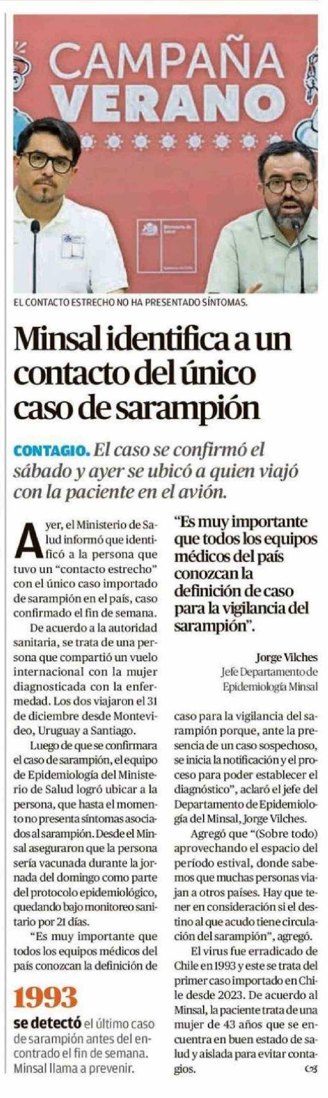 Título: Minsal identifica a un contacto del único caso de sarampión