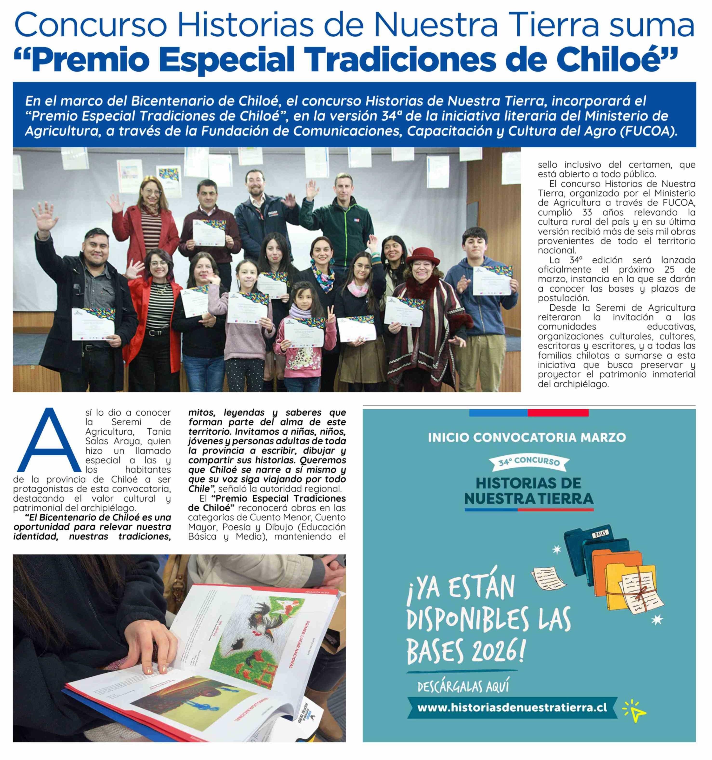 Concurso Historias de Nuestra Tierra suma "Premio Especial Tradiciones de Chiloé" 19-02-2026 El Insular |