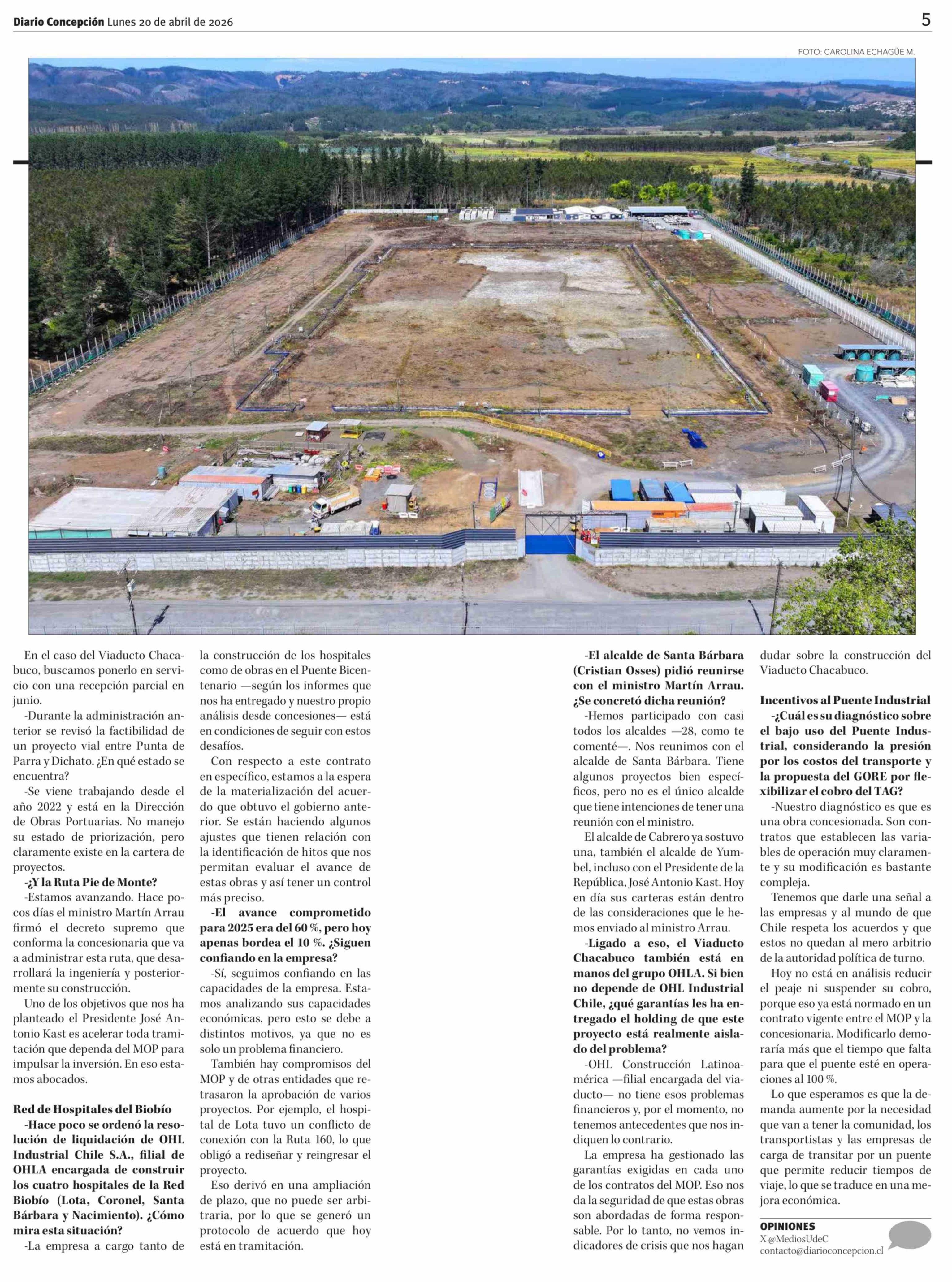 Seremi MOP ratifica continuidad de Red de Hospitales y descarta eliminación de cobros en Puente Industrial 20-04-2026 Diario Concepción |