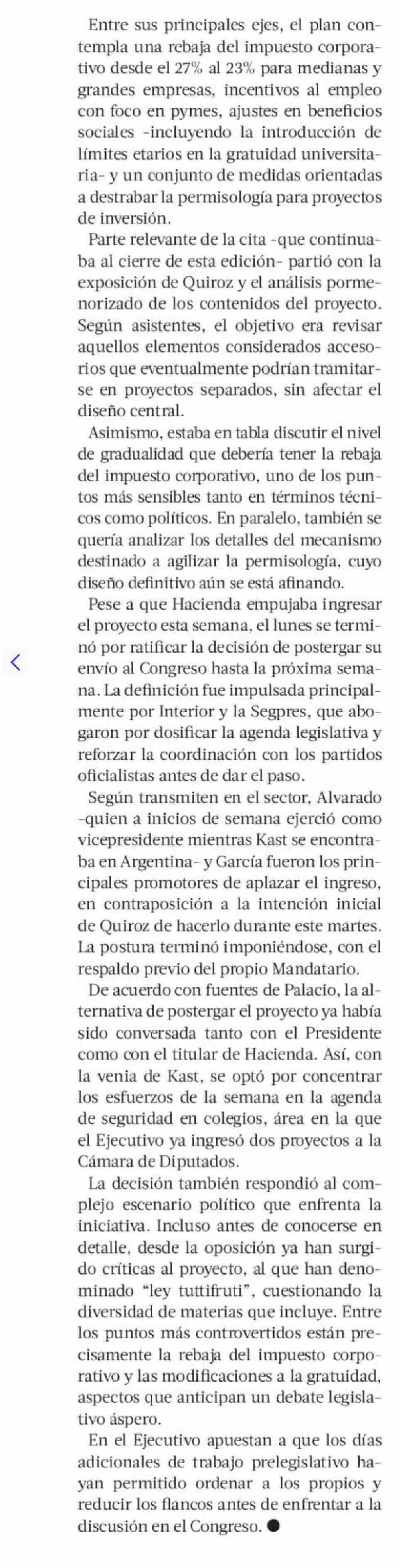 Kast lidera cita con ministros para hacer ajustes finales a reforma de "Reconstrucción Nacional" 10-04-2026 La Tercera |
