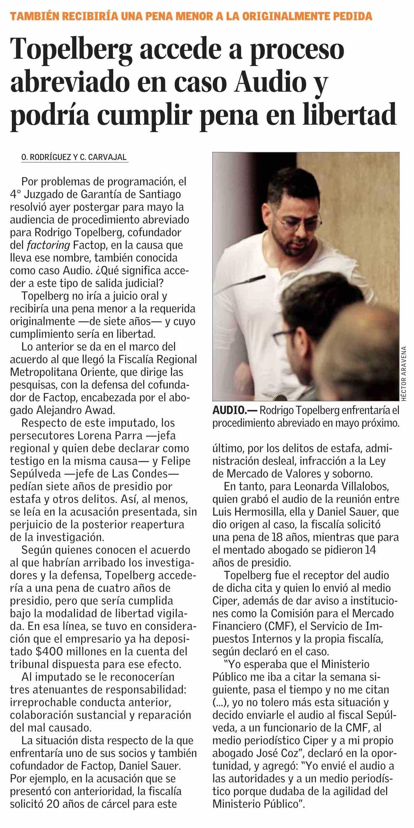 Título: Topelberg accede a proceso abreviado en caso Audio y podría cumplir pena en libertad