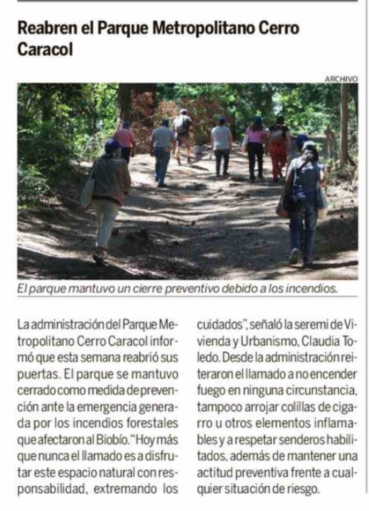 Reabren el Parque Metropolitano Cerro Caracol 20-02-2026 Hoy x Hoy Concepción |