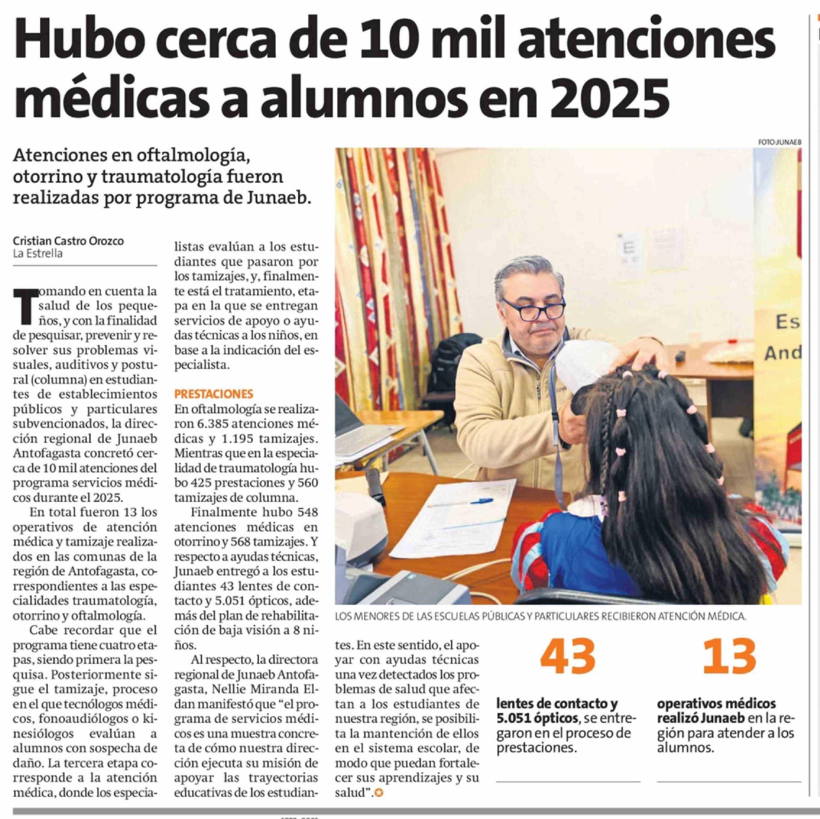 Hubo cerca de 10 mil atenciones médicas a alumnos en 2025 05-02-2026 La Estrella de Antofagasta |
