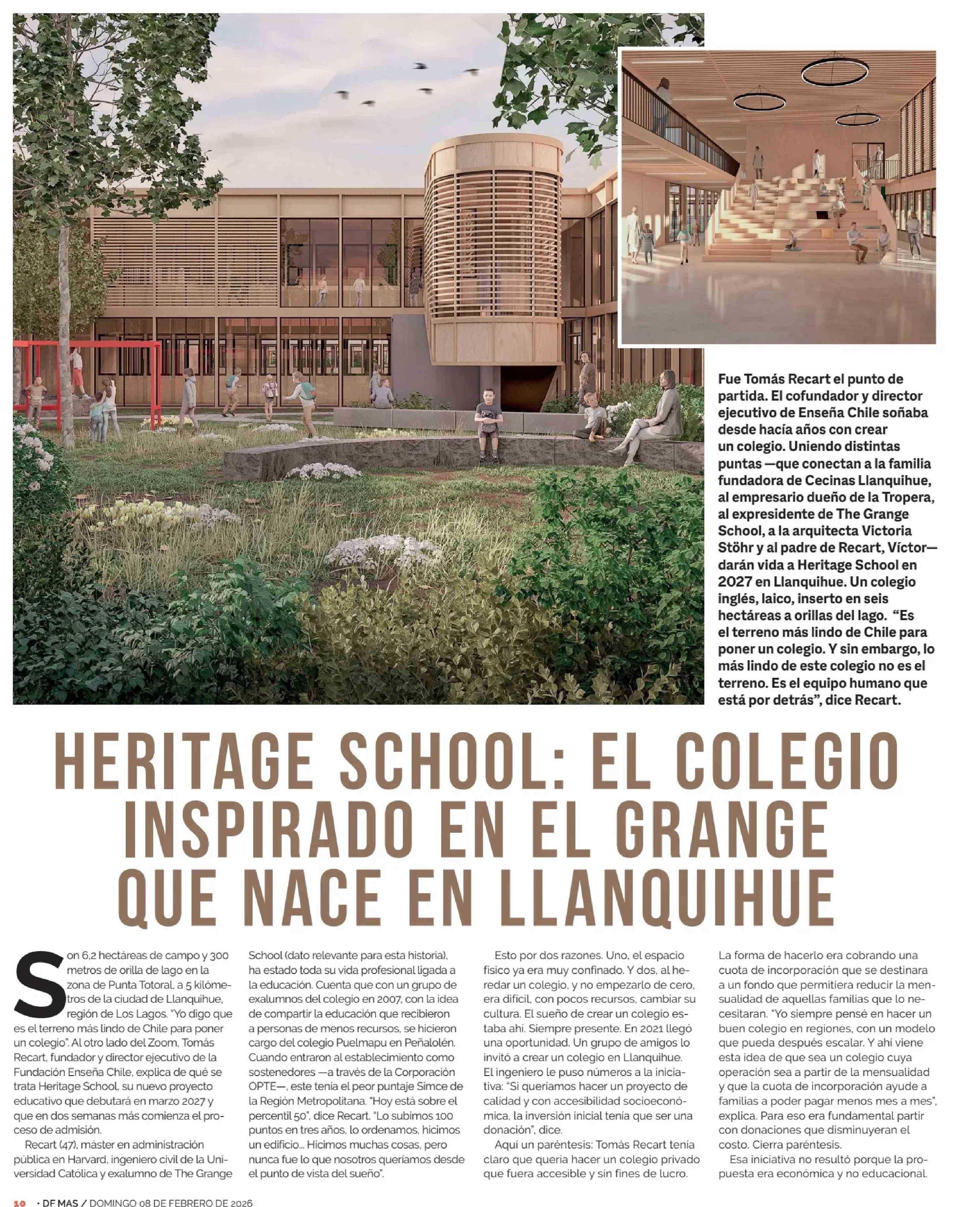 HERITAGE SCHOOL: EL COLEGIO INSPIRADO EN EL GRANGE QUE NACE EN LLANQUIHUE 08-02-2026 Diario Financiero |