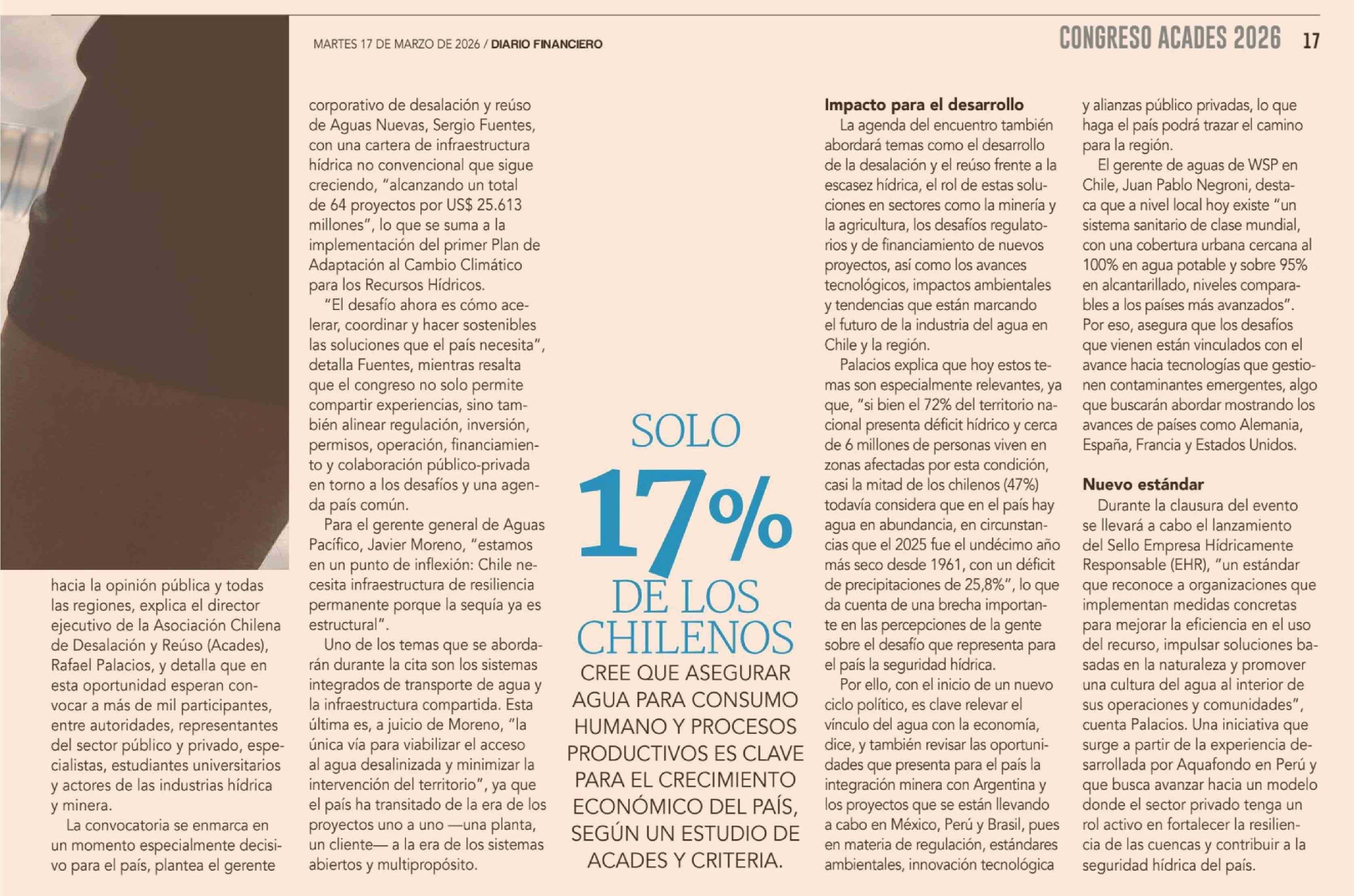 EPICENTRO DE OPORTUNIDADES Y DESAFIOS PARA LA SEGURIDAD HÍDRICA EN CHILE 17-03-2026 Diario Financiero |