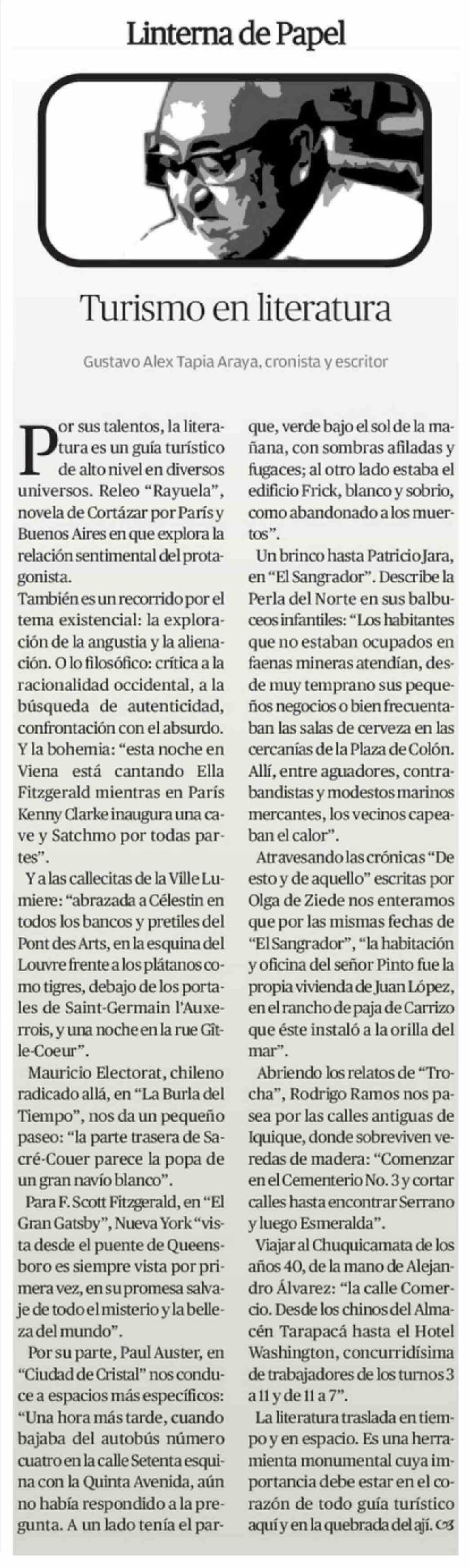Columnas de Opinión: Turismo en literatura 24-02-2026 El Mercurio de Antofagasta |