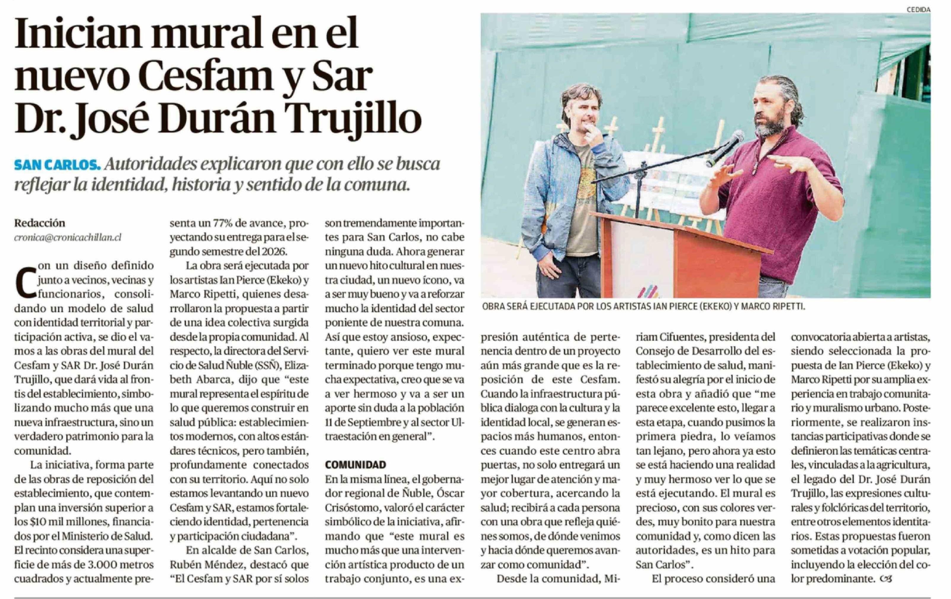 Título: Inician mural en el nuevo Cesfam y Sar Dr. José Durán Trujillo