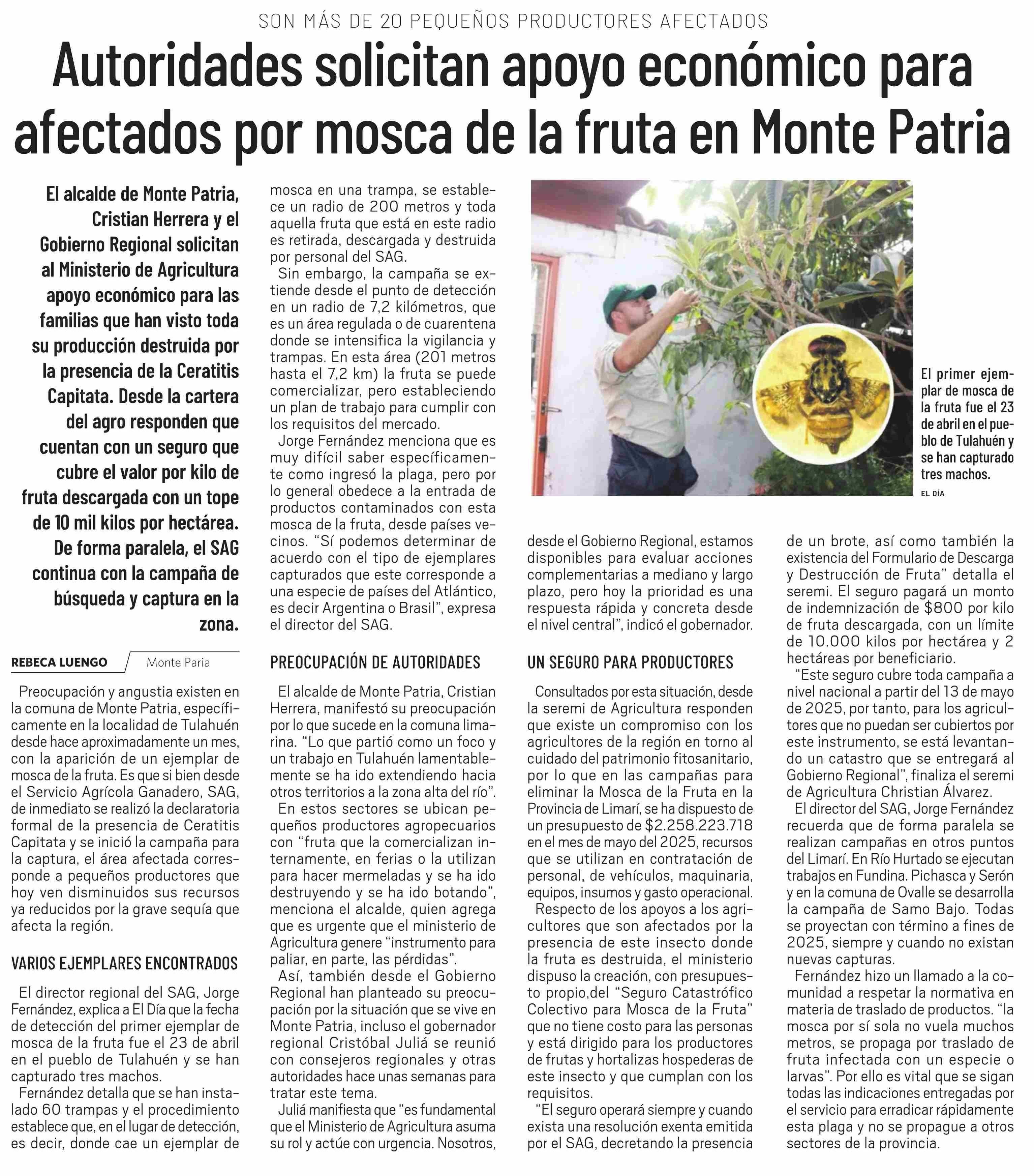 Autoridades solicitan apoyo económico para afectados por mosca de la fruta en Monte Patria 09-06-2025 El Día |
