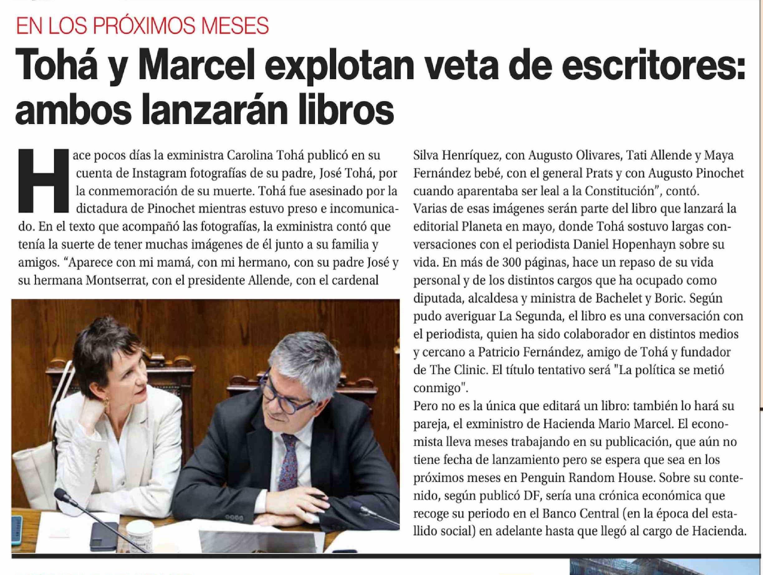 Tohá y Marcel explotan veta de escritores: ambos lanzarán libros 18-03-2026 La Segunda |