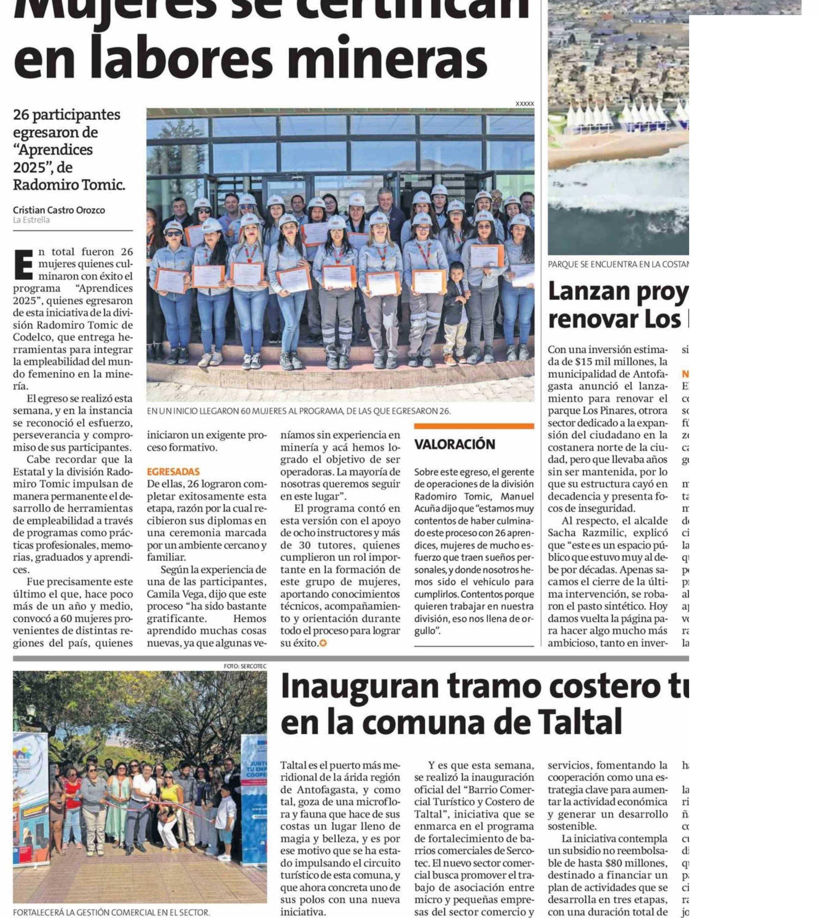 Mujeres se certifican en labores mineras 28-01-2026 La Estrella de Antofagasta |