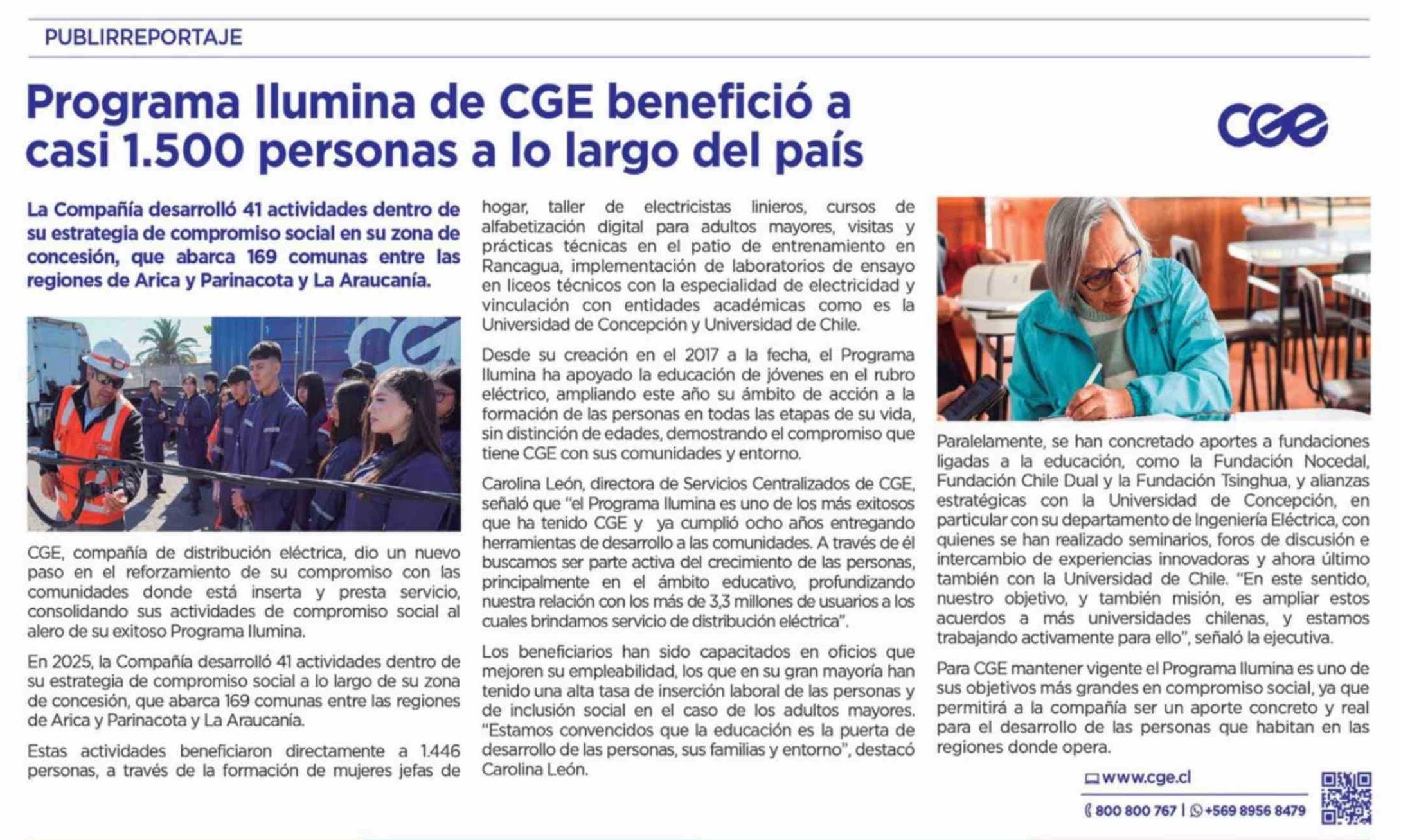 Título: Programa Ilumina de CGE benefició a casi 1.500 personas a lo largo del país