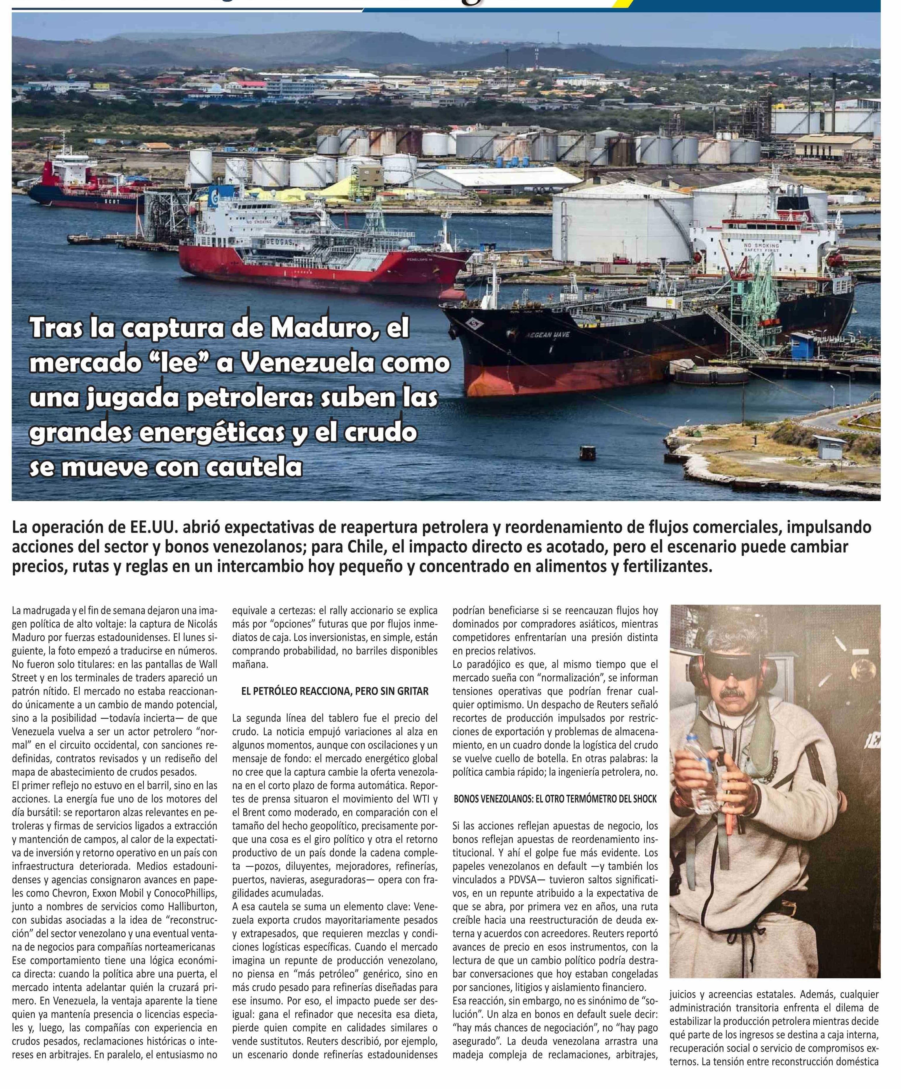 Tras la captura de Maduro, el mercado "lee" a Venezuela como una jugada petrolera: suben las grandes energéticas y el crudo se mueve con cautela 06-01-2026 El Longino |