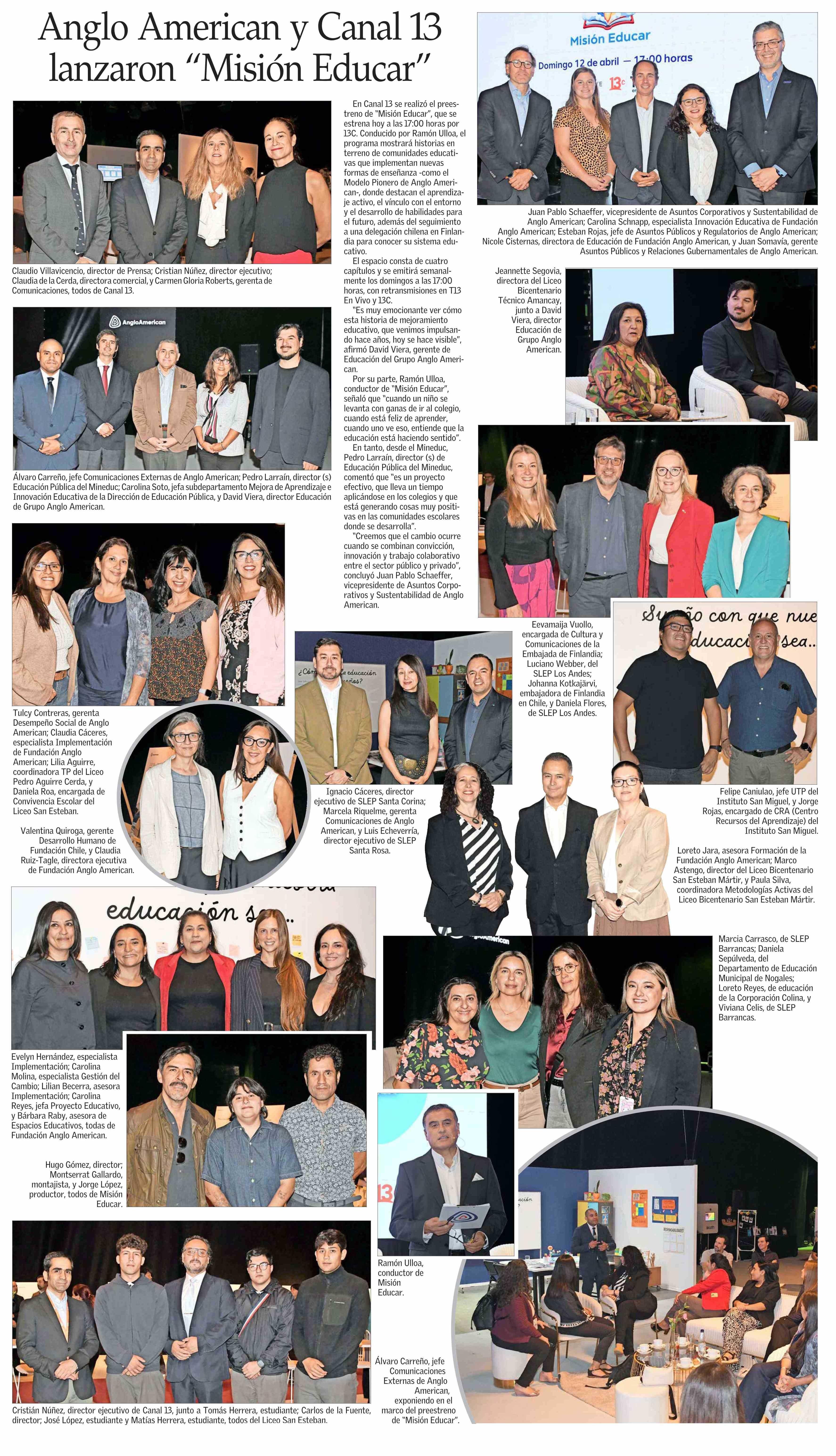 Anglo American y Canal 13 lanzaron “Misión Educar” 12-04-2026 El Mercurio |