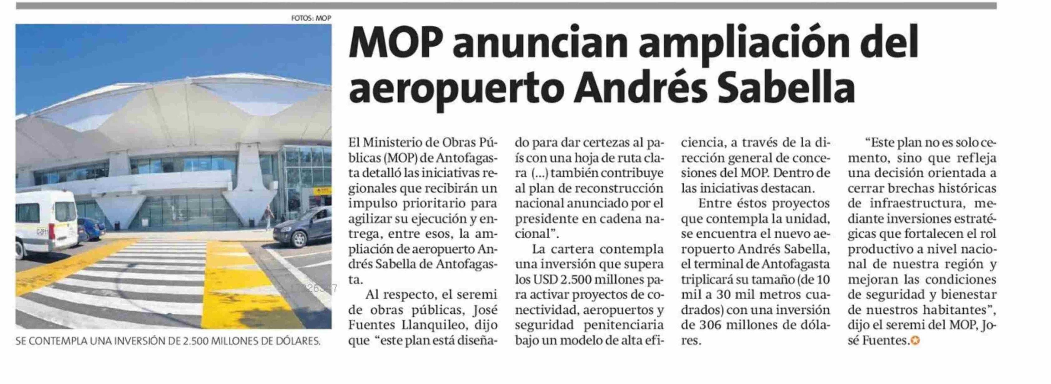 Título: MOP anuncian ampliación del aeropuerto Andrés Sabella