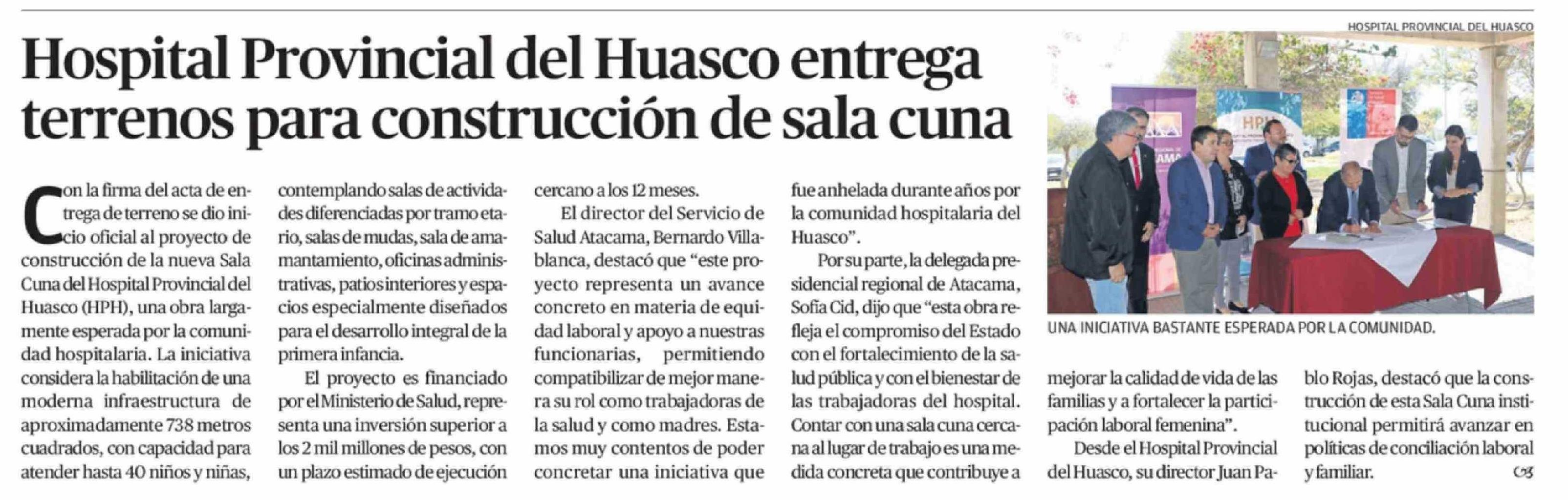 Hospital Provincial del Huasco entrega terrenos para construcción de sala cuna 04-04-2026 El Diario de Atacama |