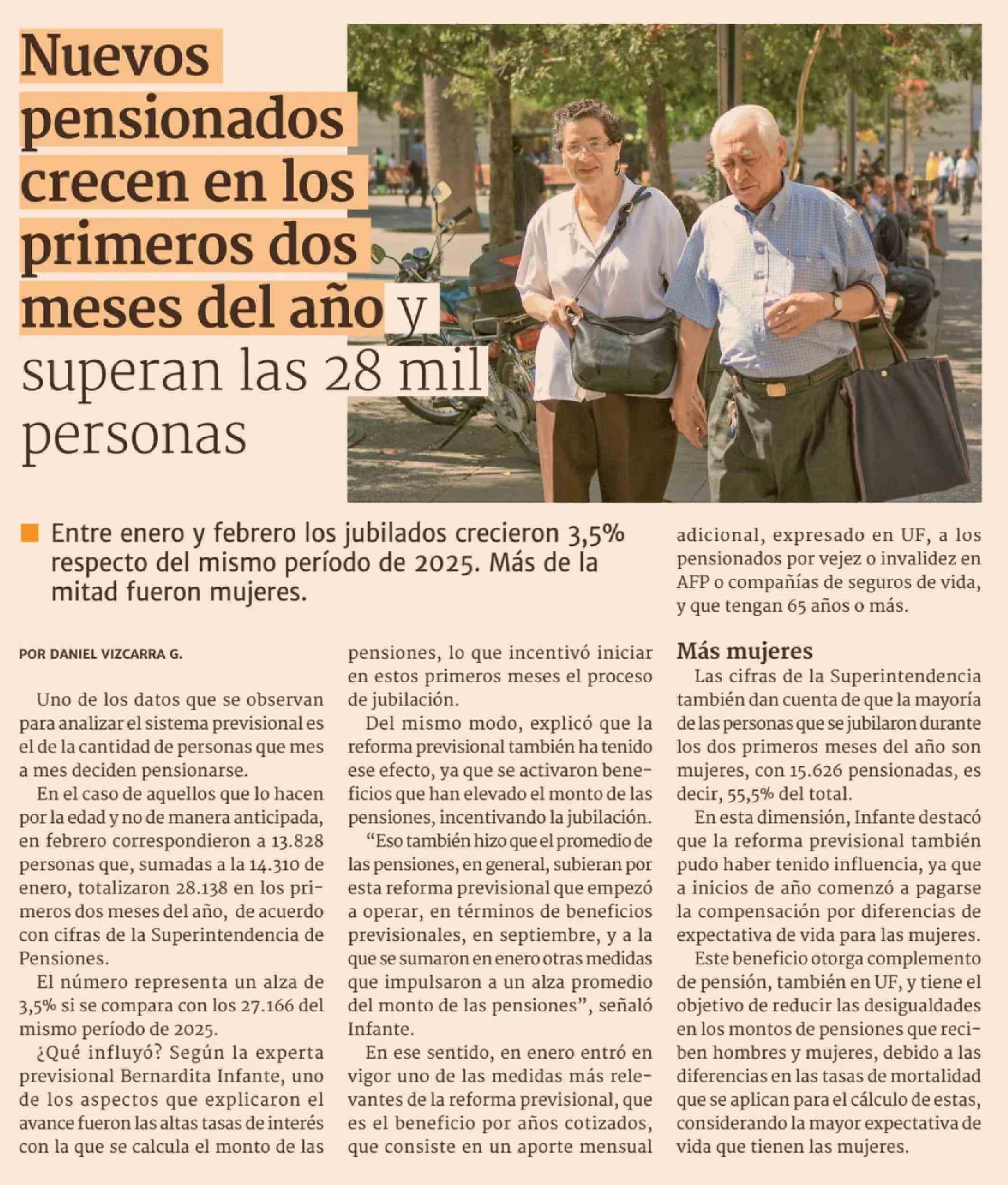 Título: Nuevos pensionados crecen en los primeros dos meses del año y superan las 28 mil personas