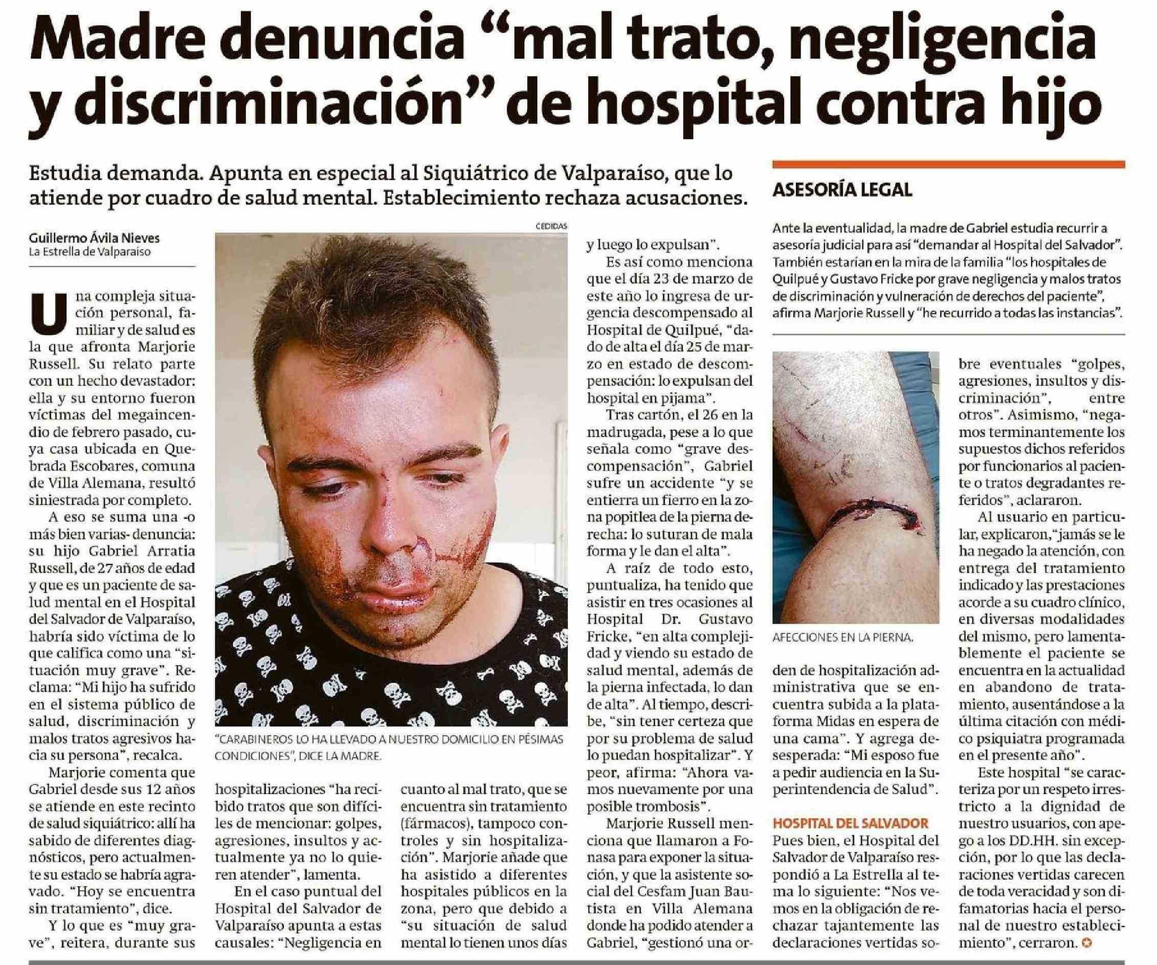 Madre denuncia “mal trato, negligencia y discriminación” de hospital contra hijo 11-04-2024 La Estrella de Valparaíso |