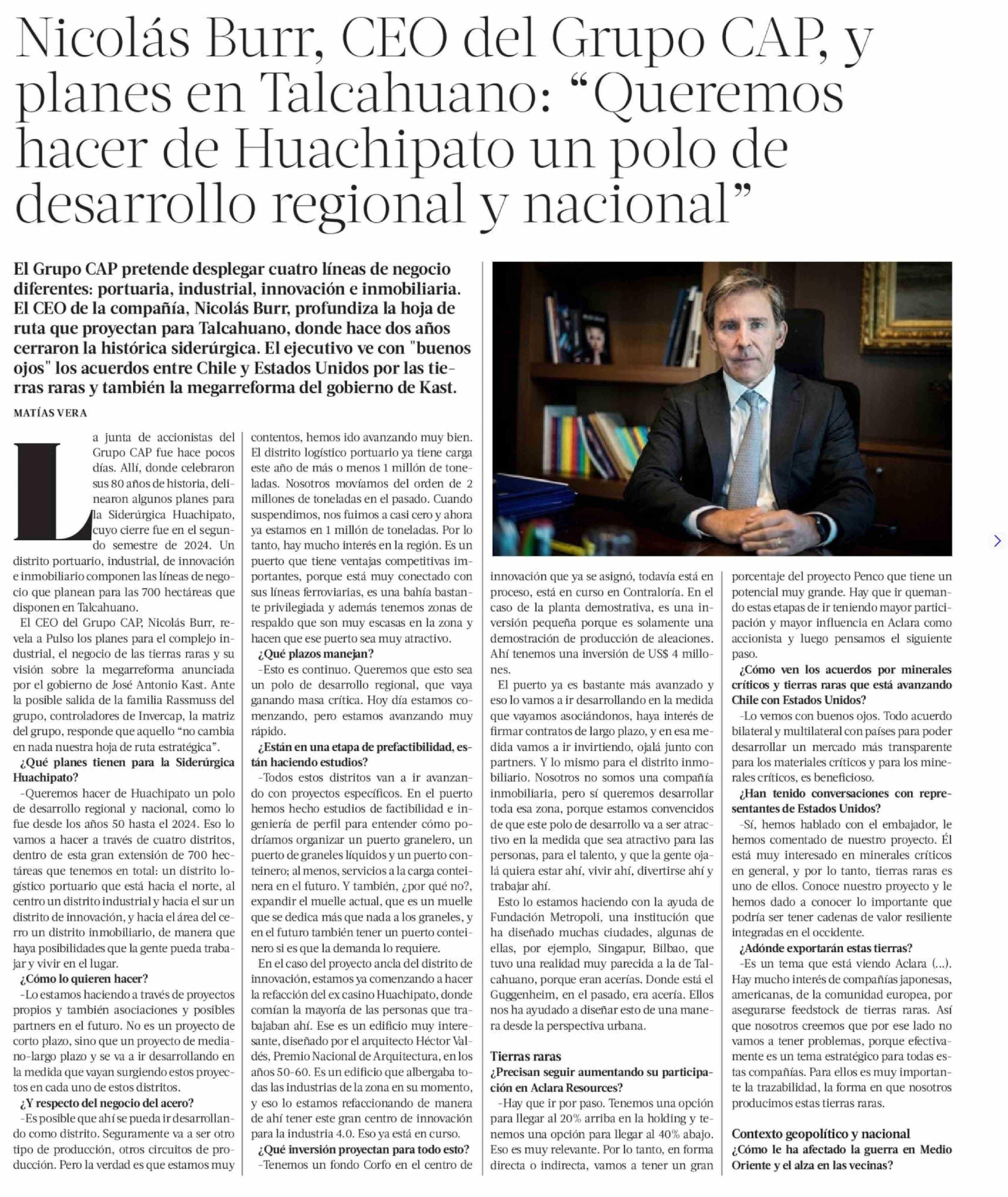 Título: Nicolás Burr, CEO del Grupo CAP, y planes en Talcahuano: "Queremos hacer de Huachipato un polo de desarrollo regional y nacional"