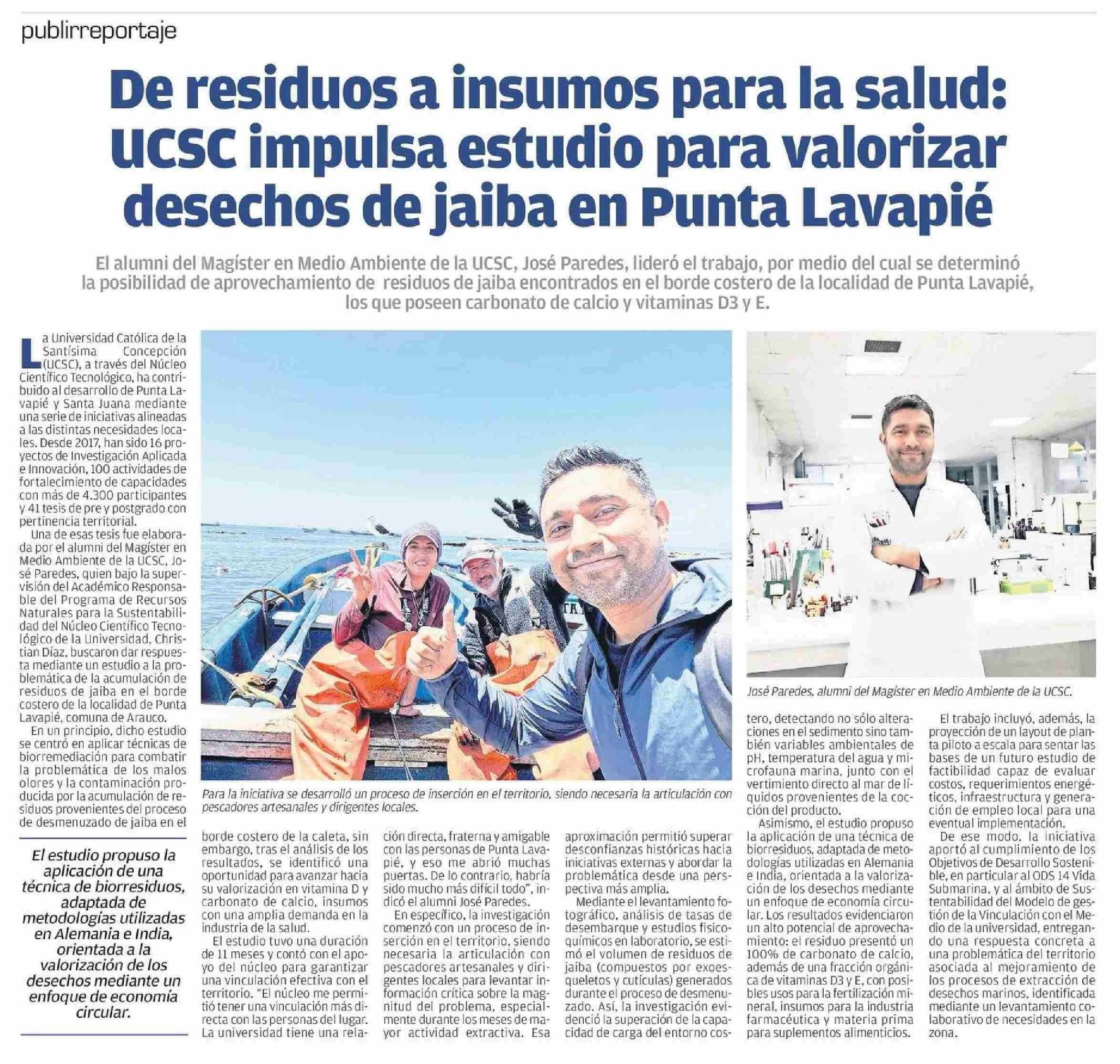 Título: De residuos a insumos para la salud: UCsc impulsa estudio para valorizar desechos de jaiba en Punta Lavapié