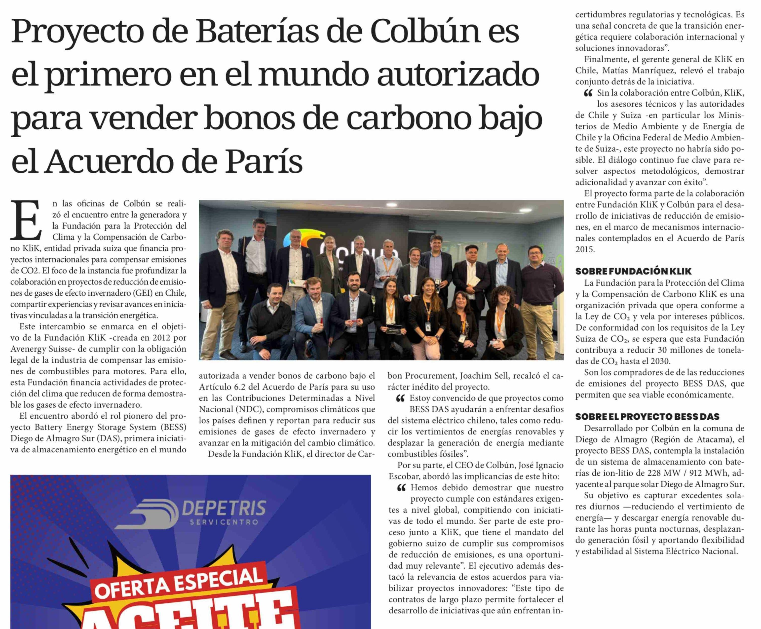 Título: Proyecto de Baterías de Colbún es el primero en el mundo autorizado para vender bonos de carbono bajo el Acuerdo de París