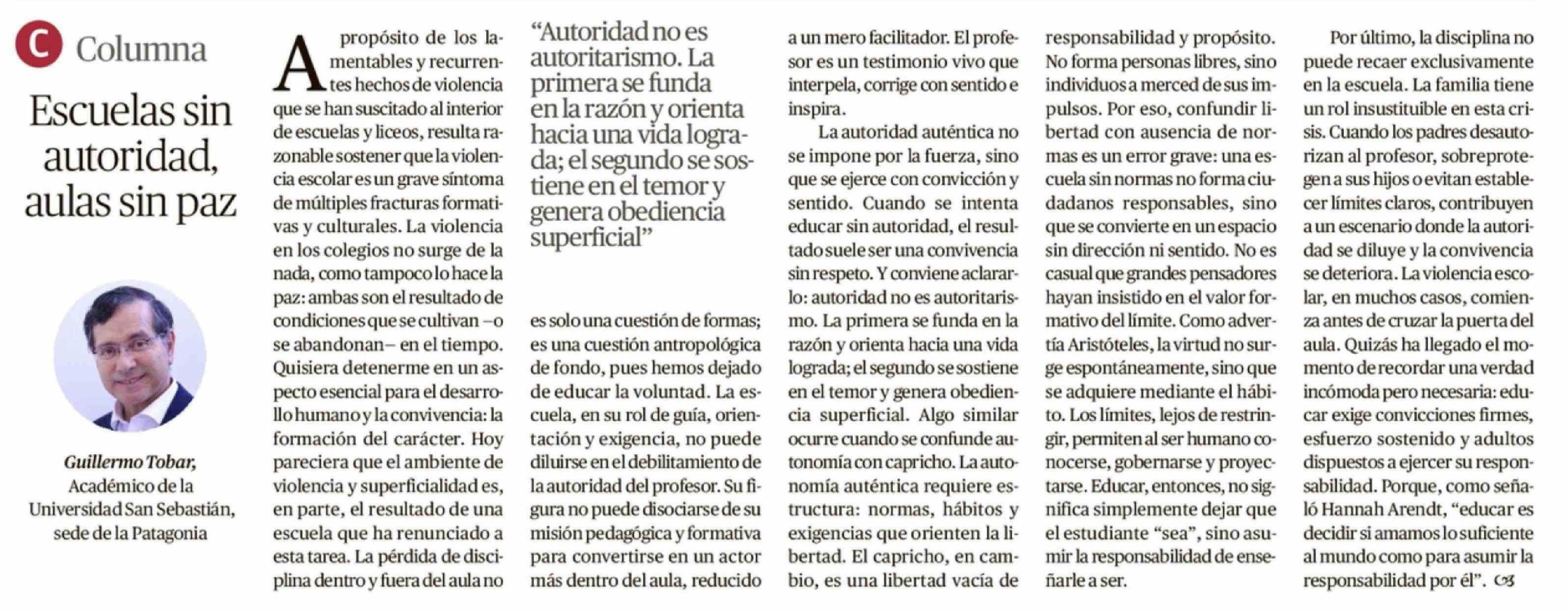 Título: Columnas de Opinión: Escuelas sin autoridad, aulas sin paz