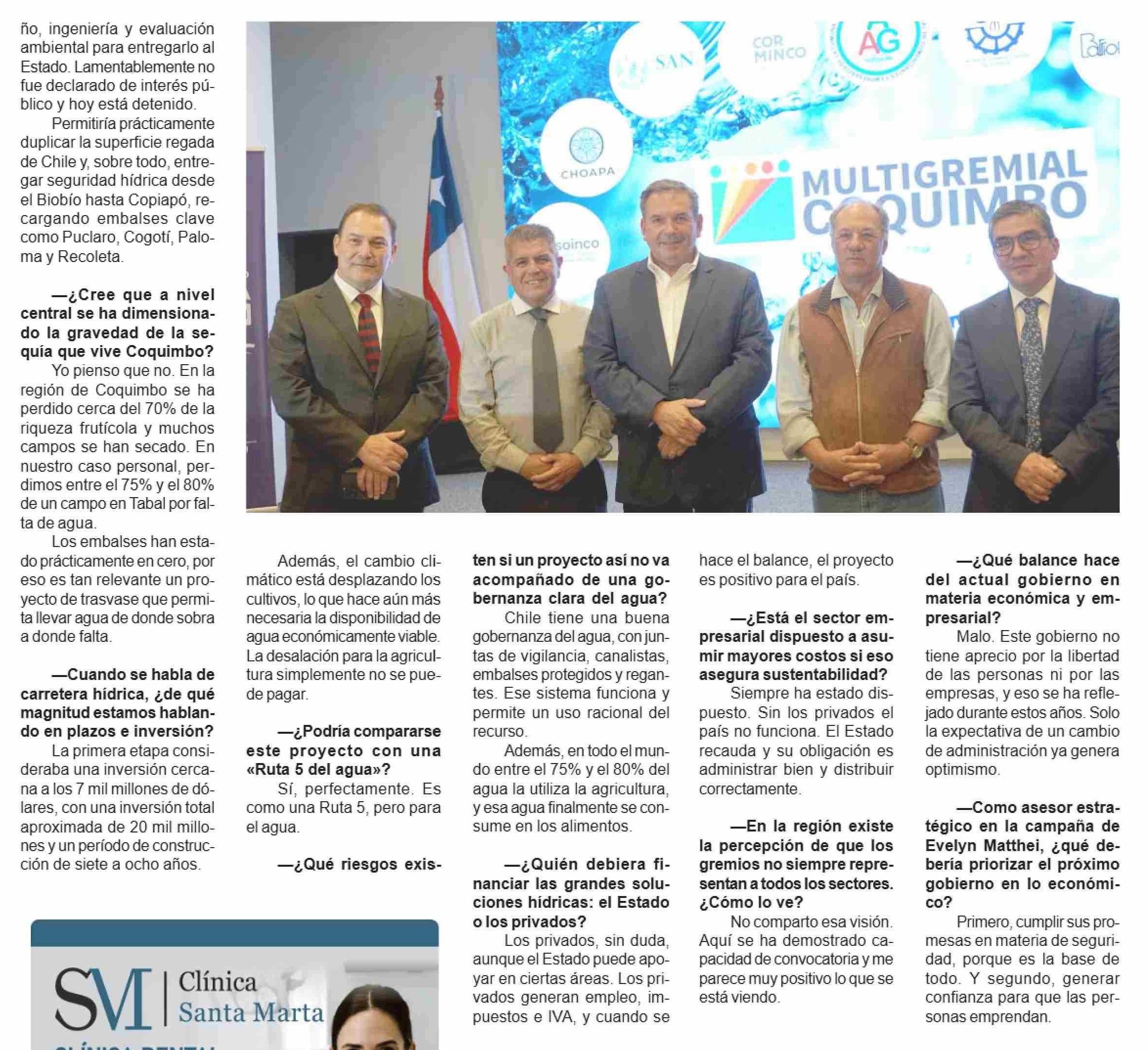Juan Sutil: «La carretera hídrica es la única solución estructural para la sequía» 08-01-2026 Diario la Región |