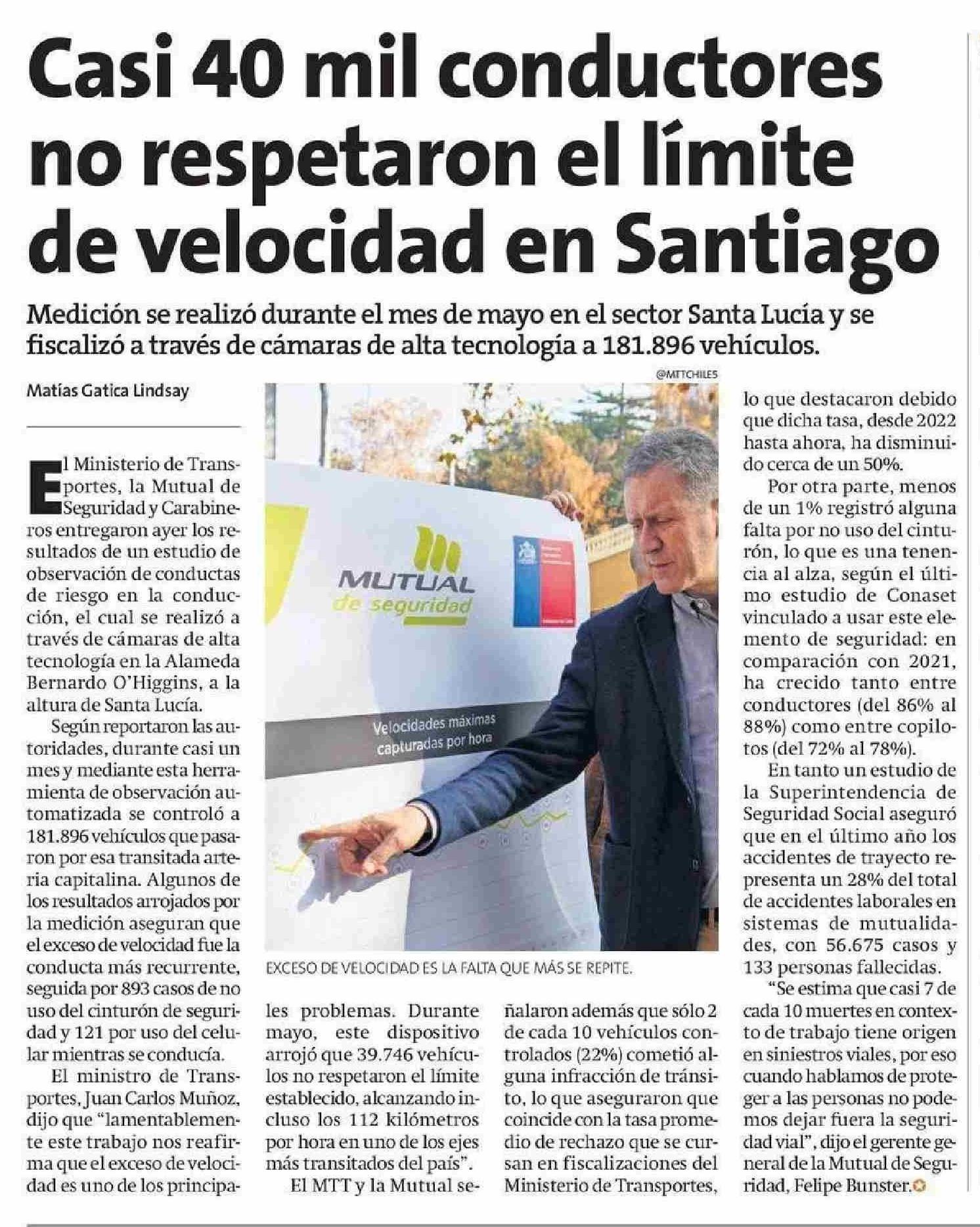 Casi 40 mil conductores no respetaron el límite de velocidad en Santiago 07-06-2025 La Estrella de Antofagasta |