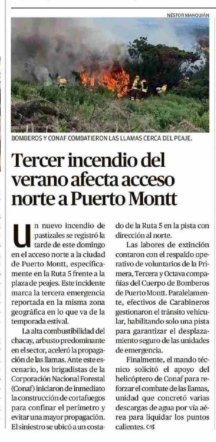 | Título: | Tercer incendio del verano afecta acceso norte a Puerto Montt |