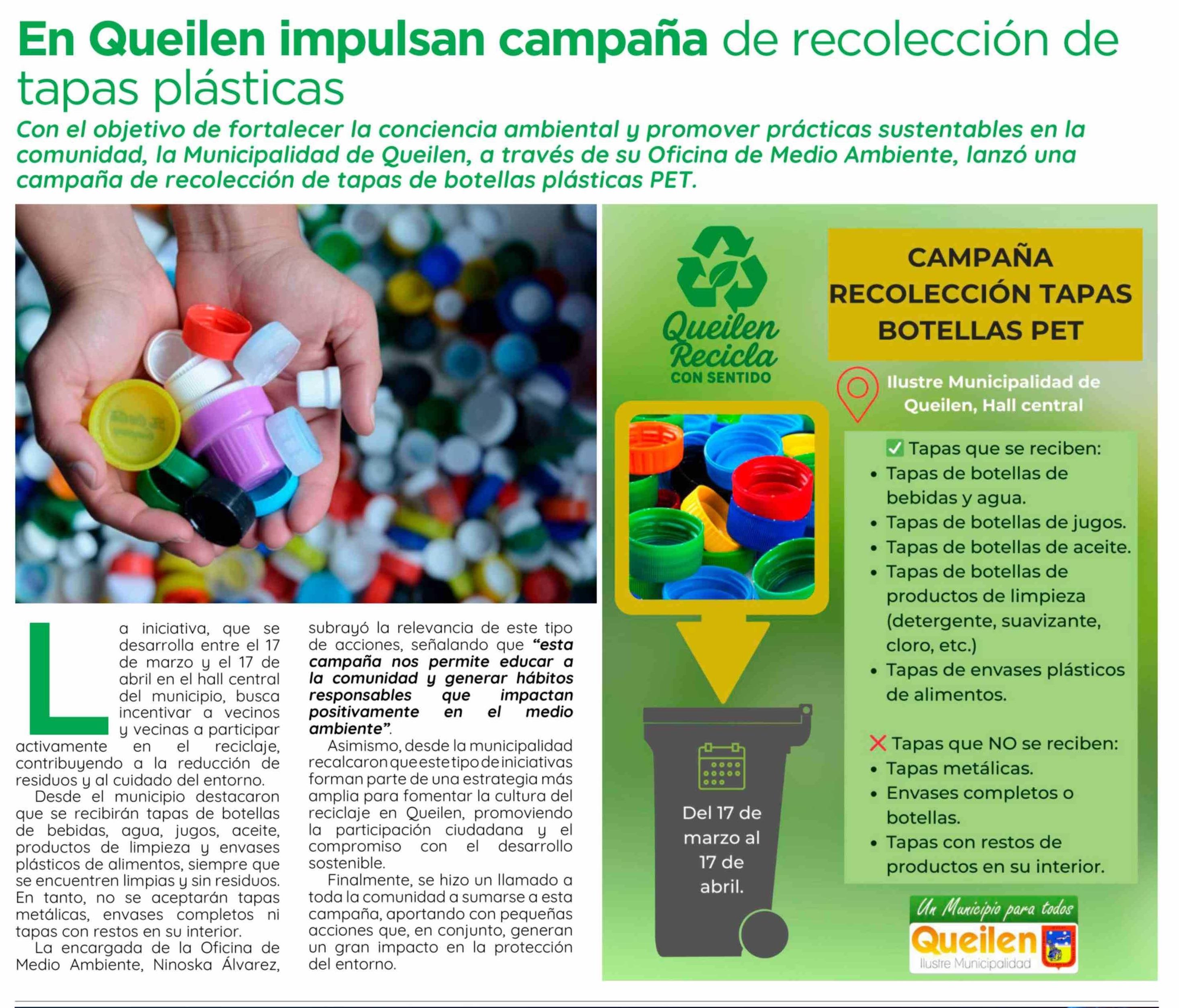Título: En Queilen impulsan campaña de recolección de tapas plásticas