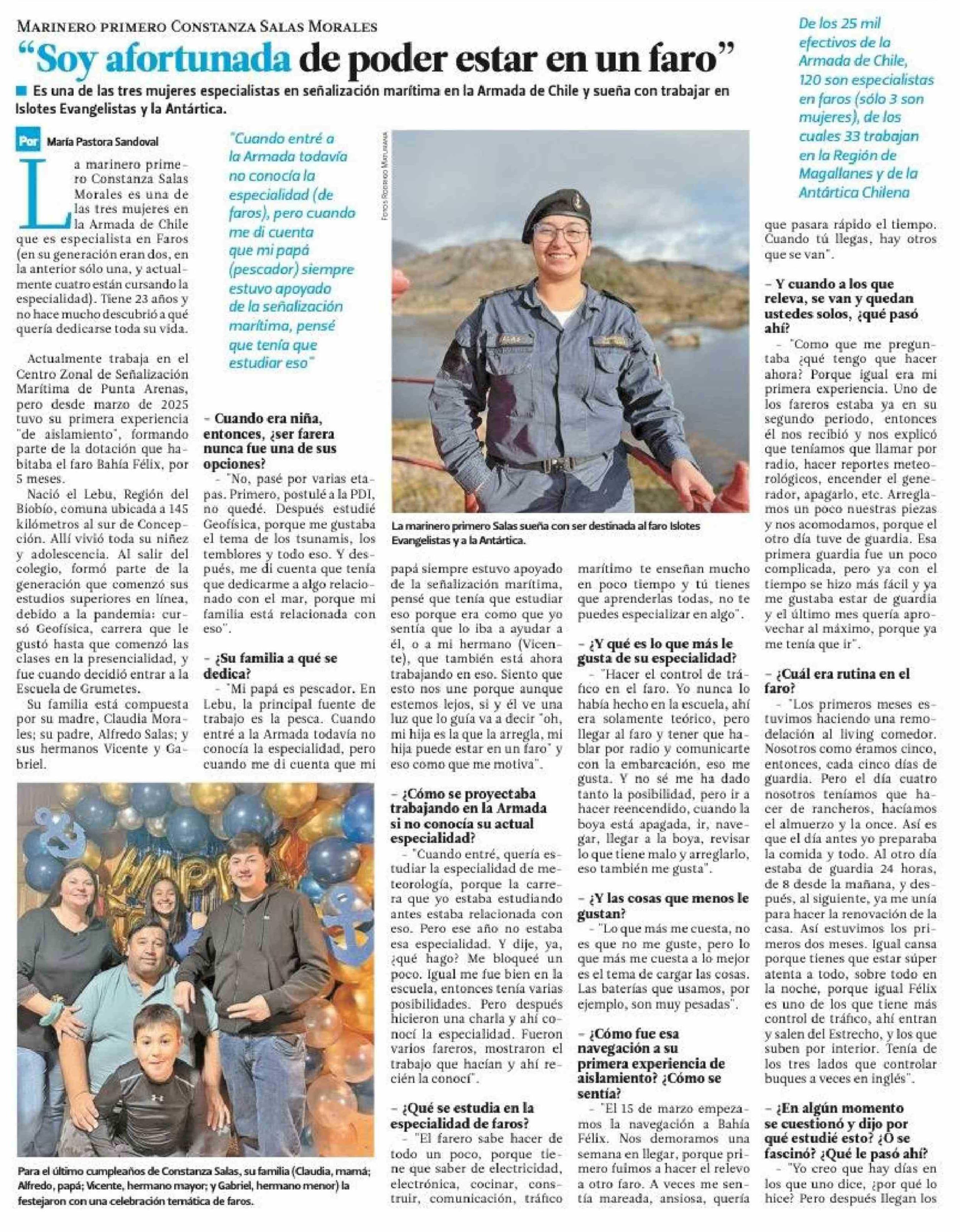 'Soy afortunada de poder estar en un faro" 15-02-2026 El Magallanes |