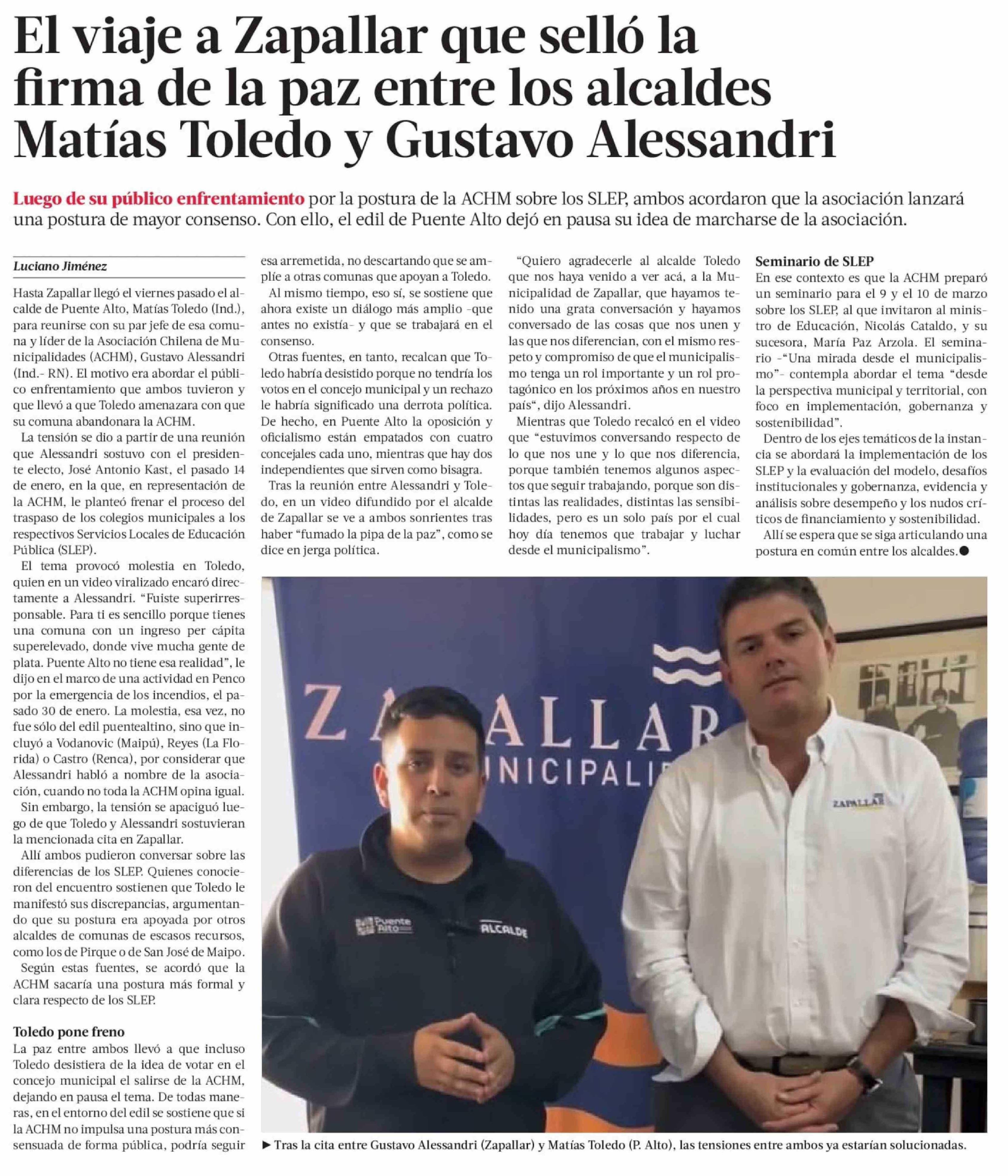 Título: El viaje a Zapallar que selló la firma de la paz entre los alcaldes Matías Toledo y Gustavo Alessandri