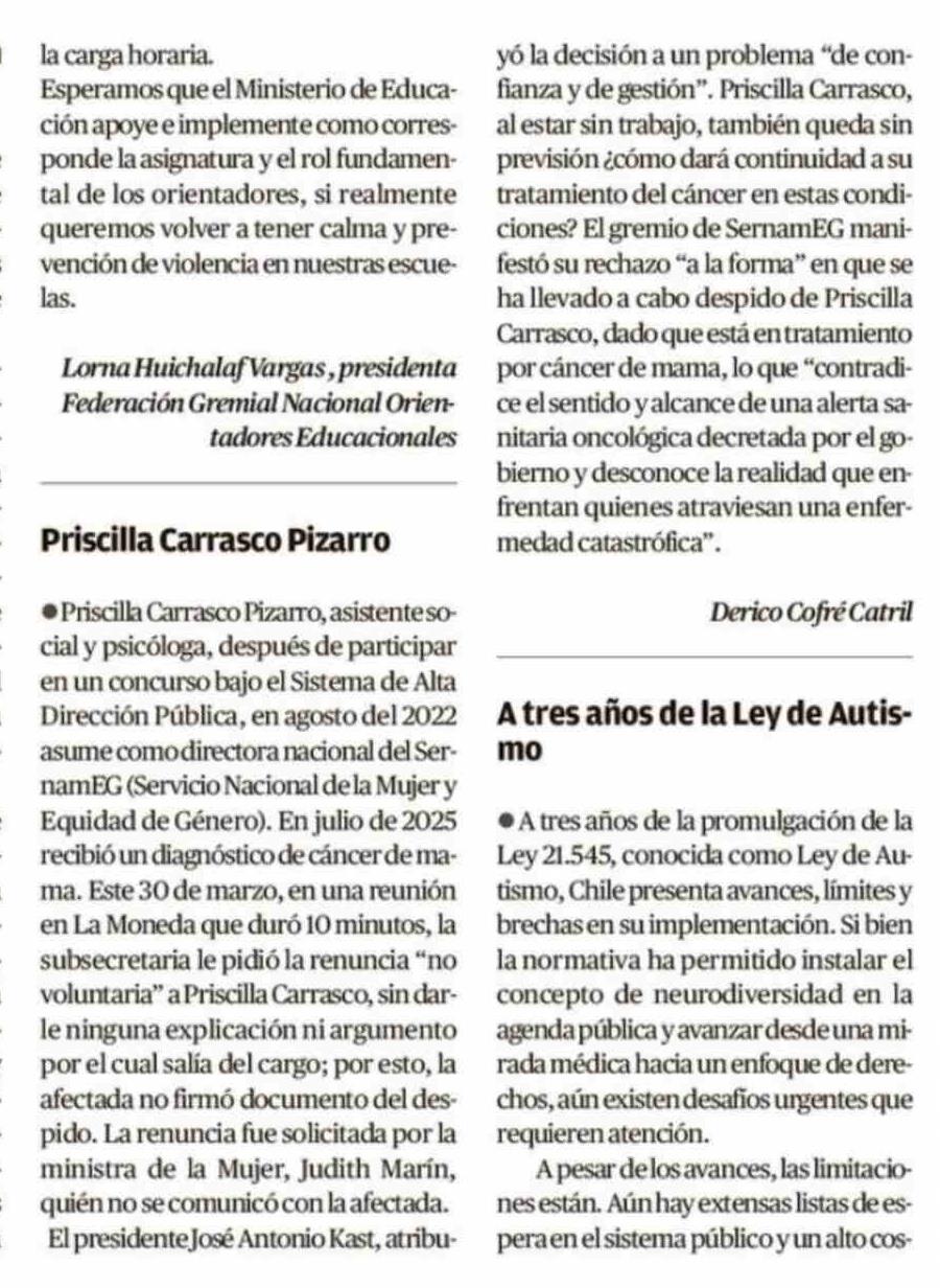 Cartas: Priscilla Carrasco Pizarro 06-04-2026 El Austral de la Araucanía |