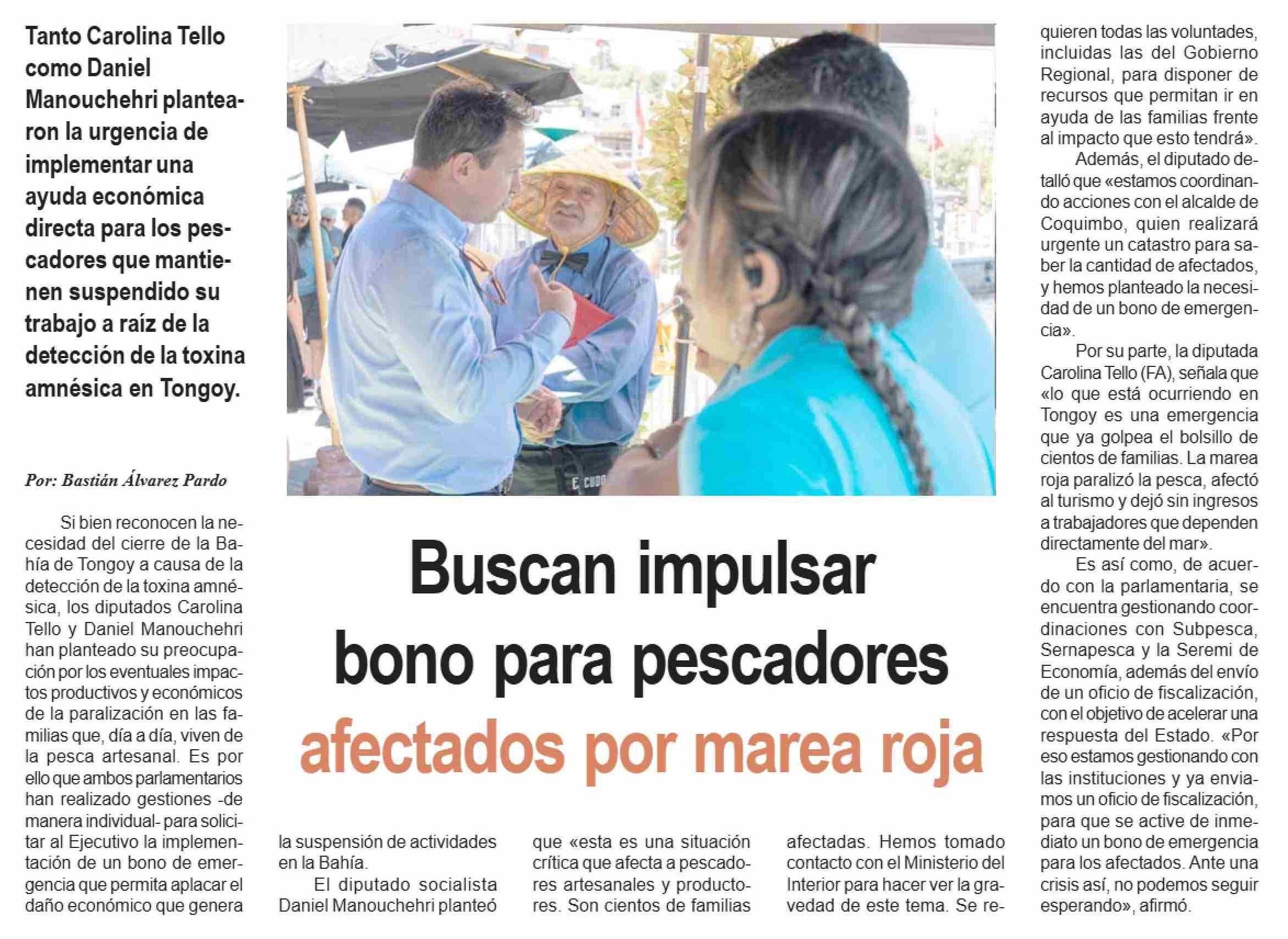 Buscan impulsar bono para pescadores afectados por marea roja 10-01-2026 Diario la Región |