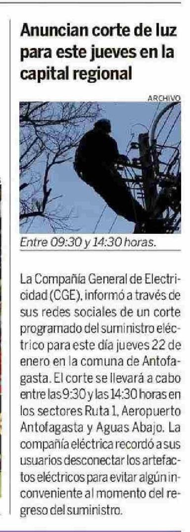 Anuncian corte de luz para este jueves en la capital regional 21-01-2026 Hoy x Hoy Antofagasta |