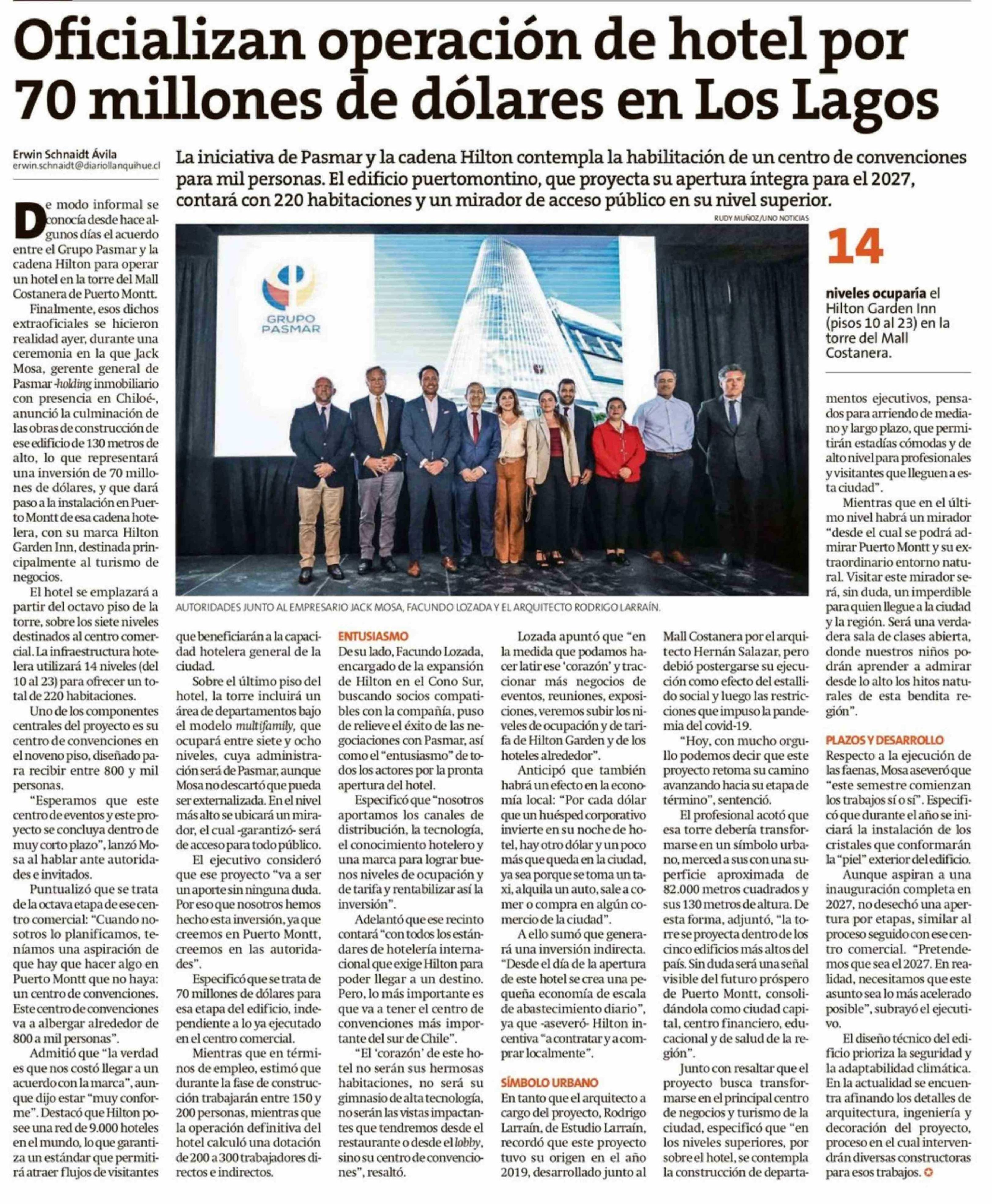 Oficializan operación de hotel por 70 millones de dólares en Los Lagos 04-02-2026 La Estrella de Chiloé |