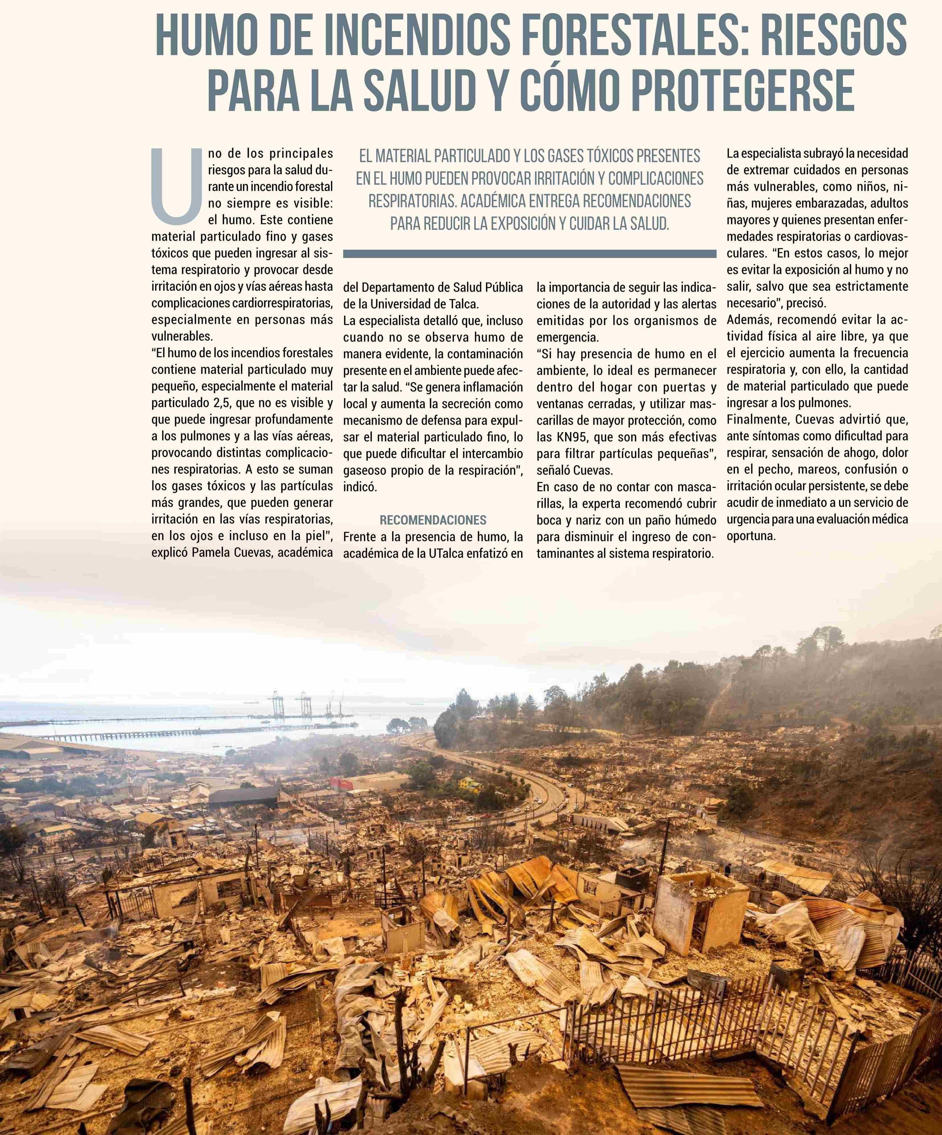 HUMO DE INCENDIOS FORESTALES: RIESGOS PARA LA SALUD Y CÓMO PROTEGERSE 24-01-2026 El Rancagüino |