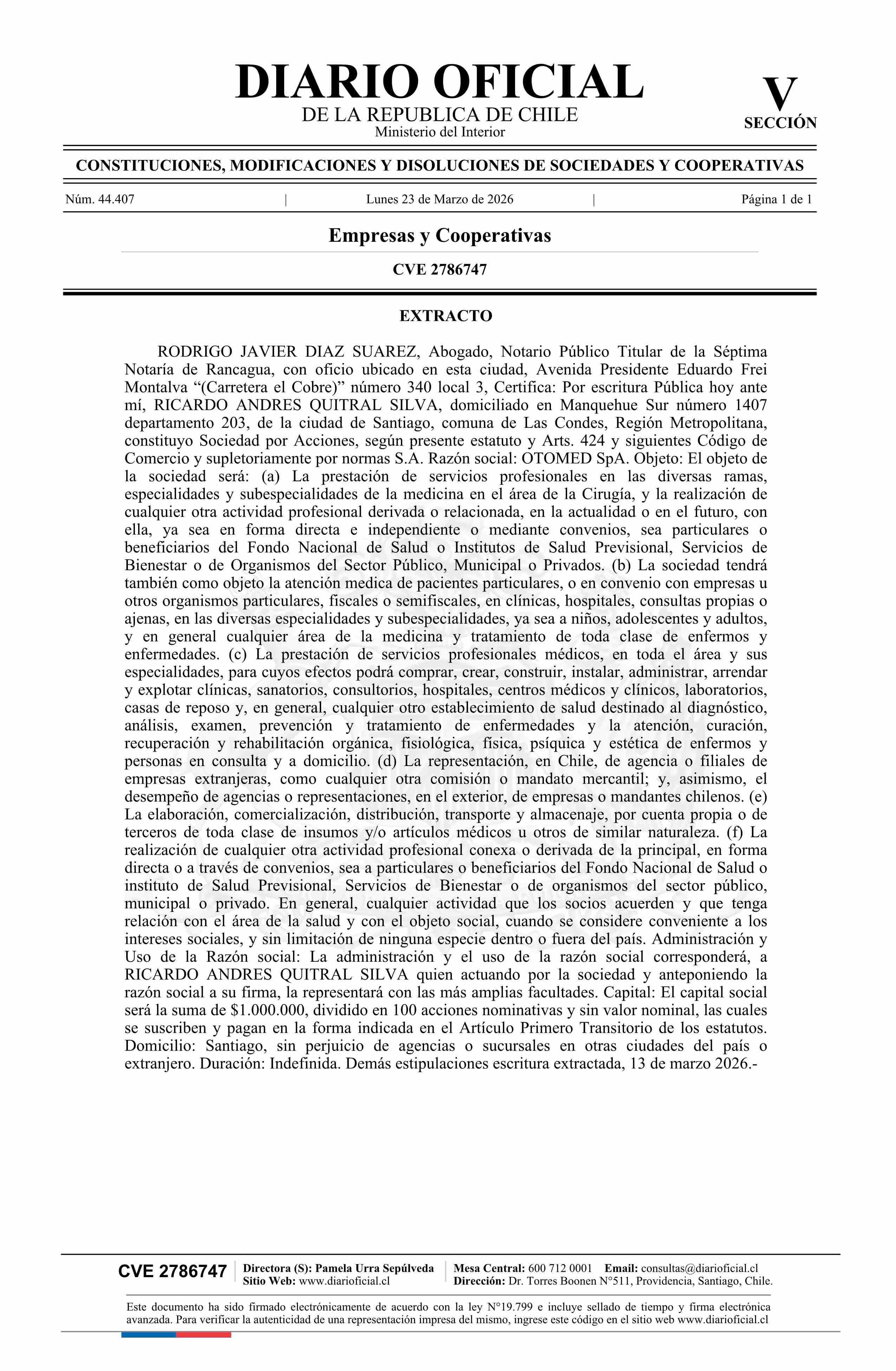 Título: OTOMED SpA
