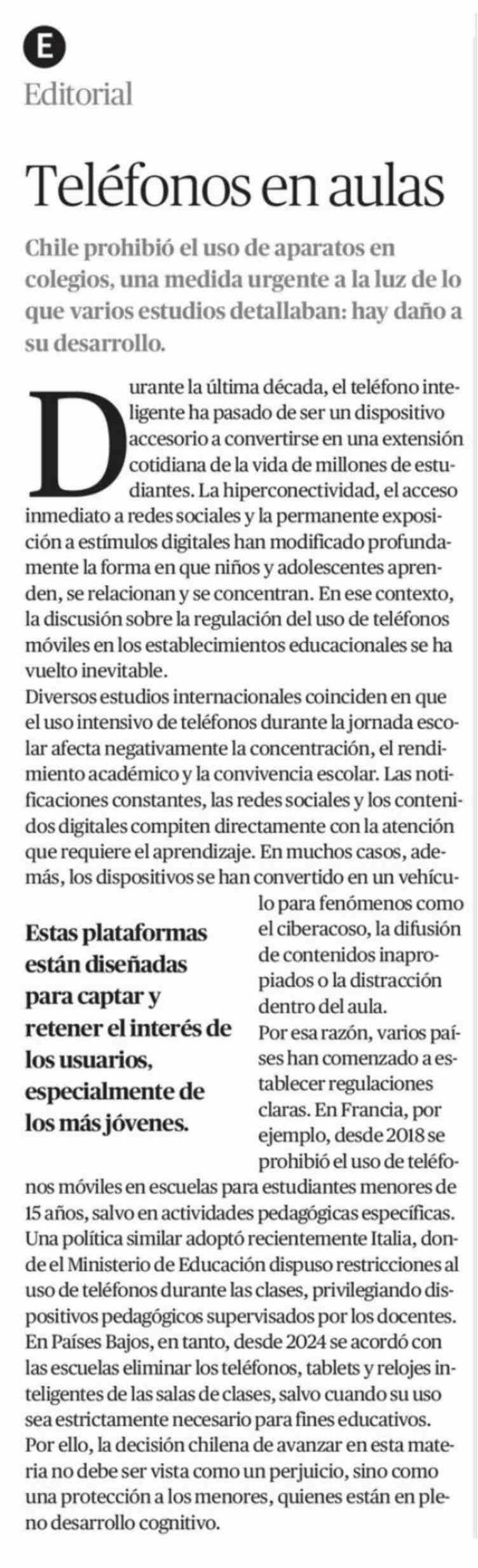 Título: Editorial: Teléfonos en aulas