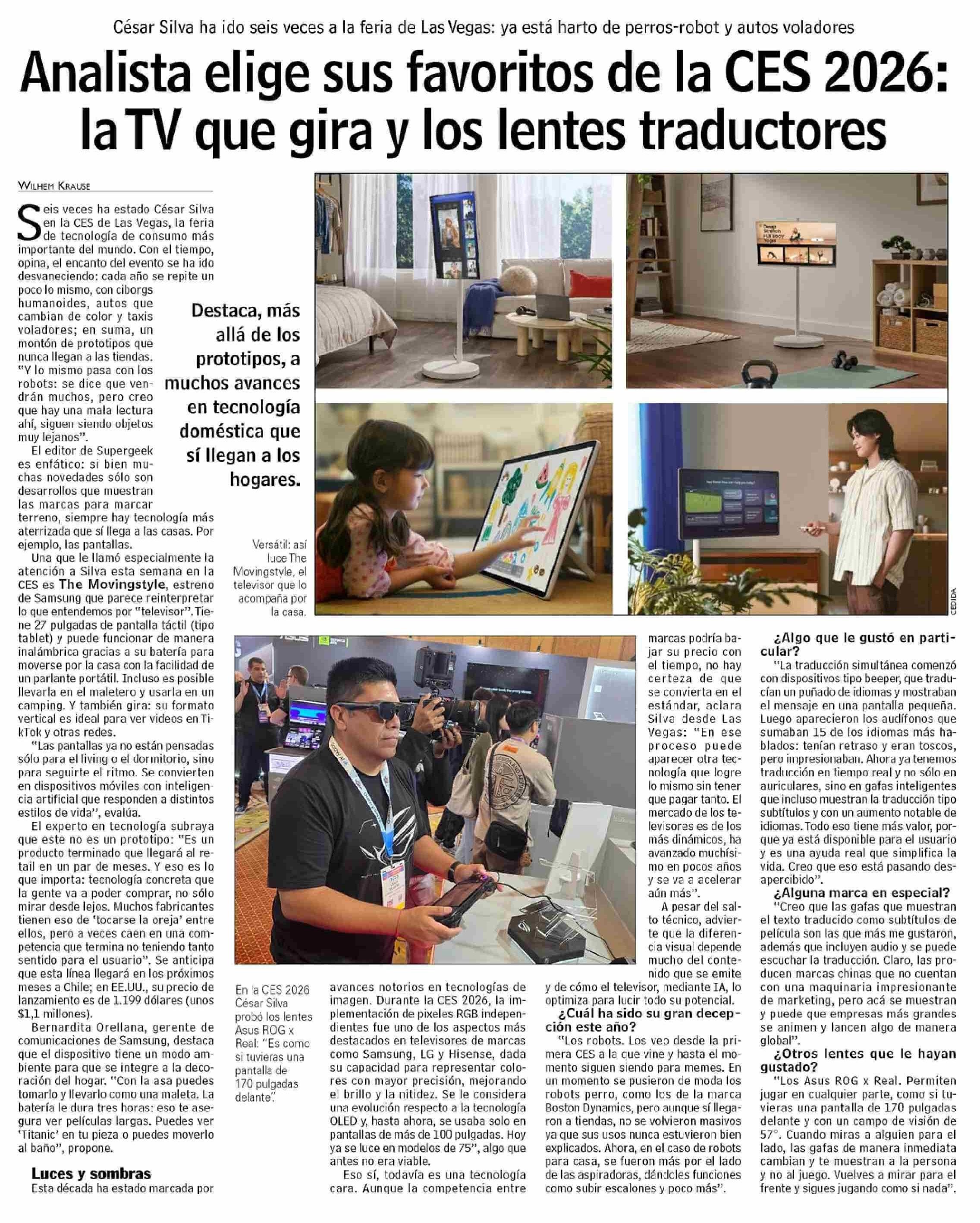 | Título: | Analista elige sus favoritos de la CES 2026: la TV que gira y los lentes traductores |