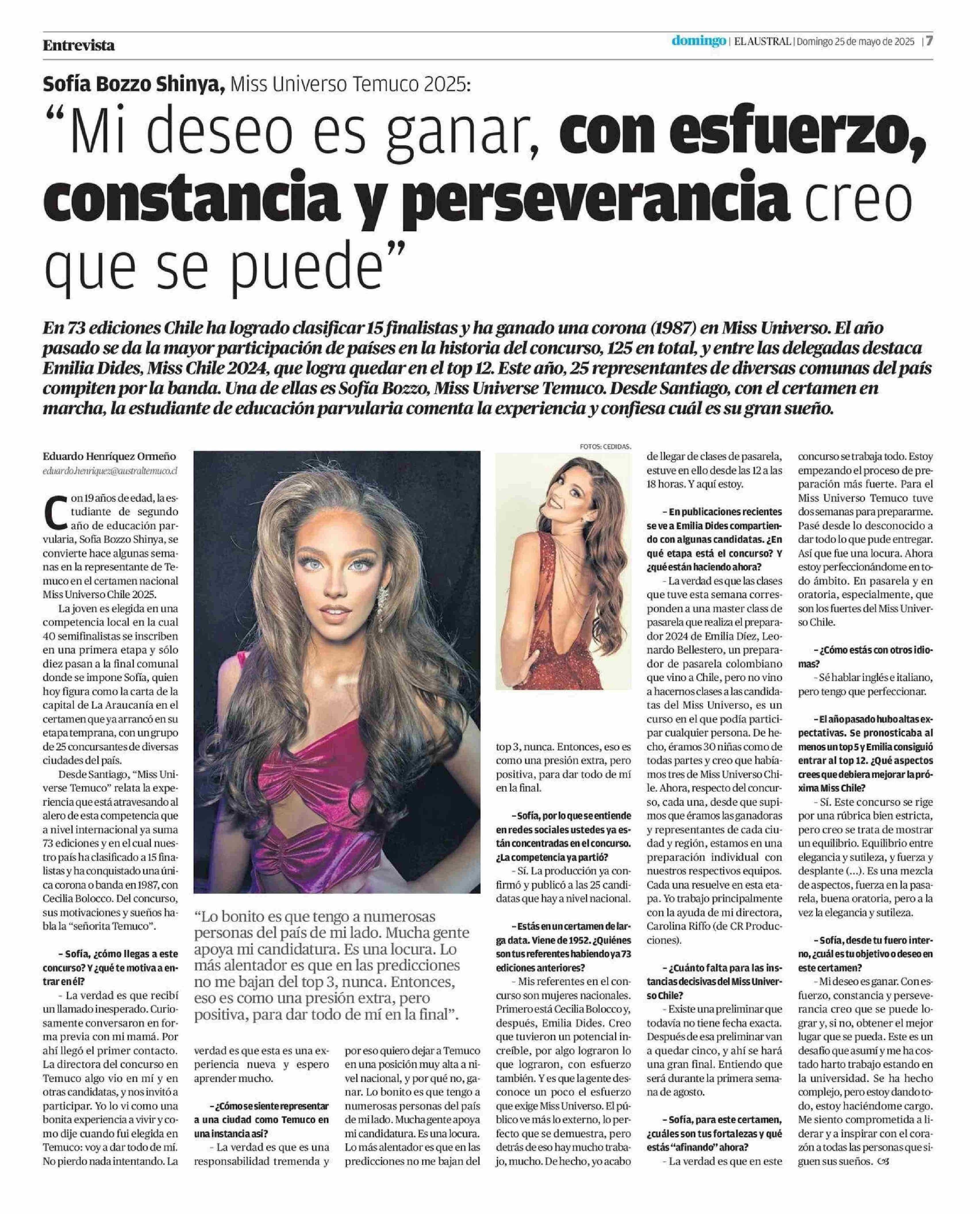 “Mi deseo es ganar, con esfuerzo, constancia y perseverancia creo que se puede” 25-05-2025 El Austral de la Araucanía |