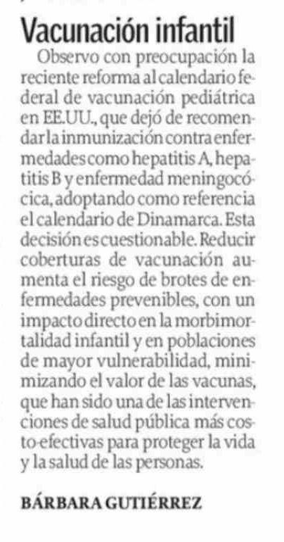 CARTAS: Vacunación infantil 12-02-2026 El Sur |