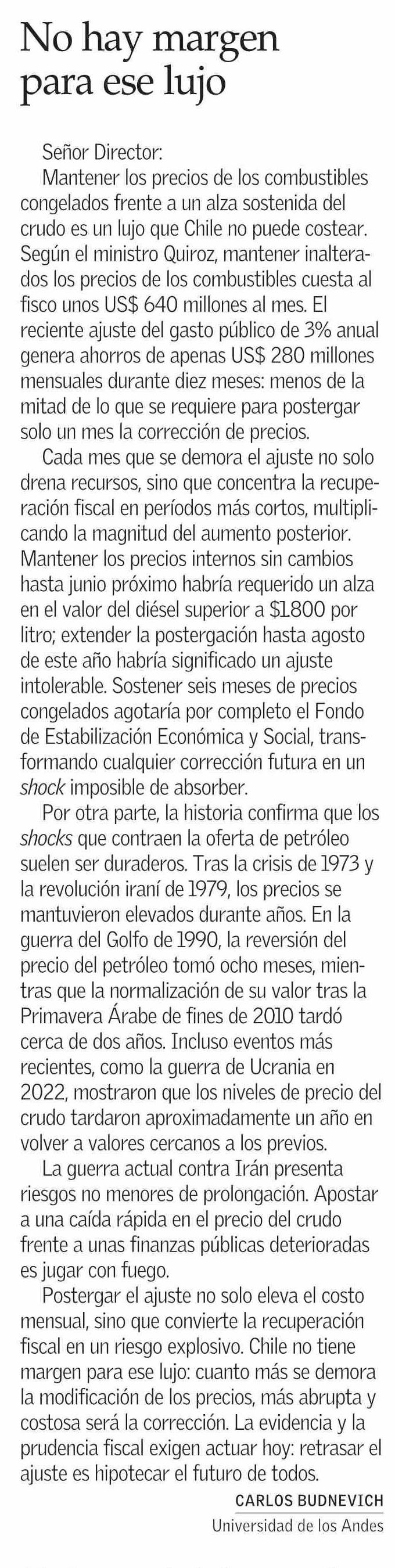 Título: Cartas: No hay margen para ese lujo