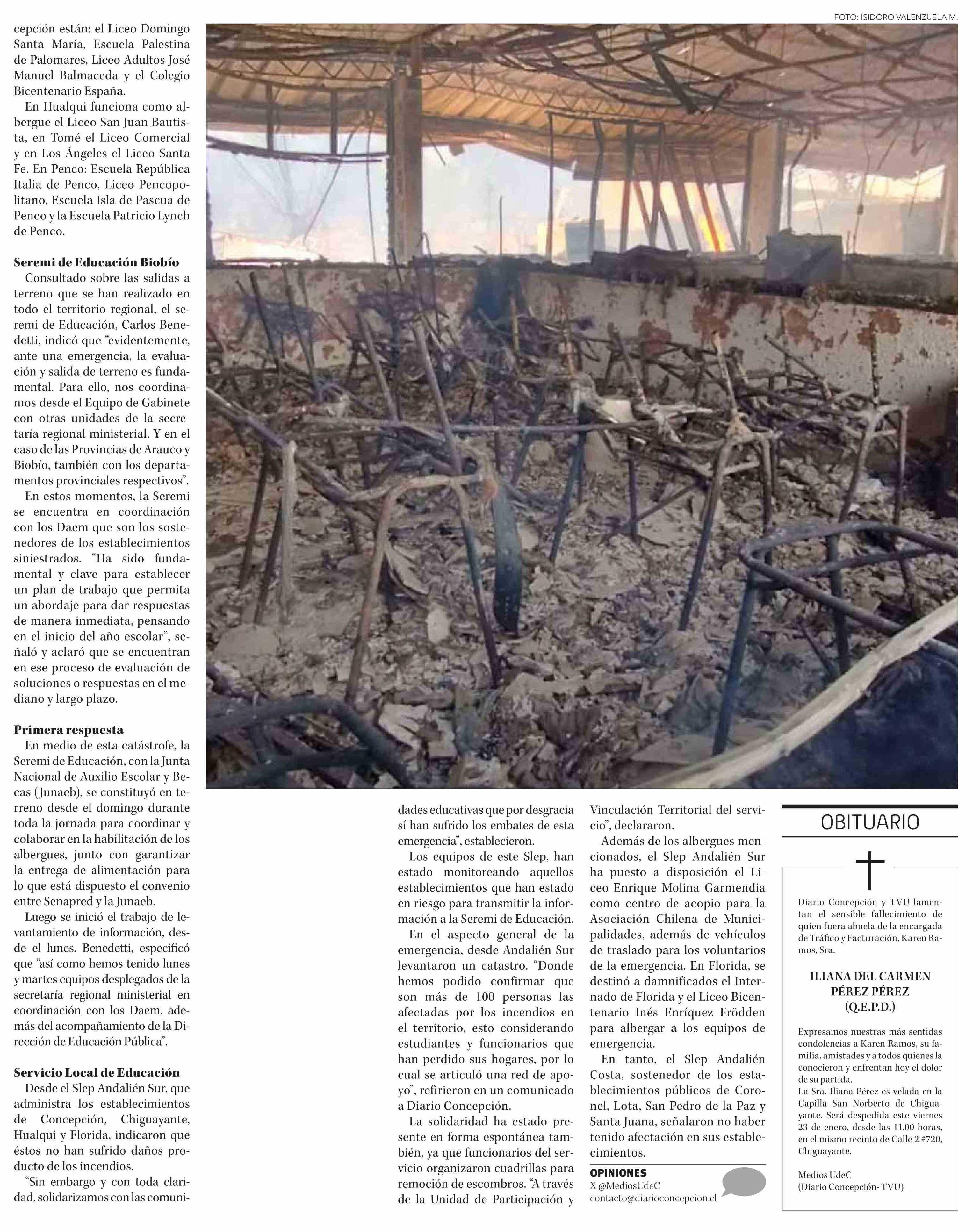 Siete recintos educacionales totalmente quemados: concentran a más de 700 estudiantes 23-01-2026 Diario Concepción |