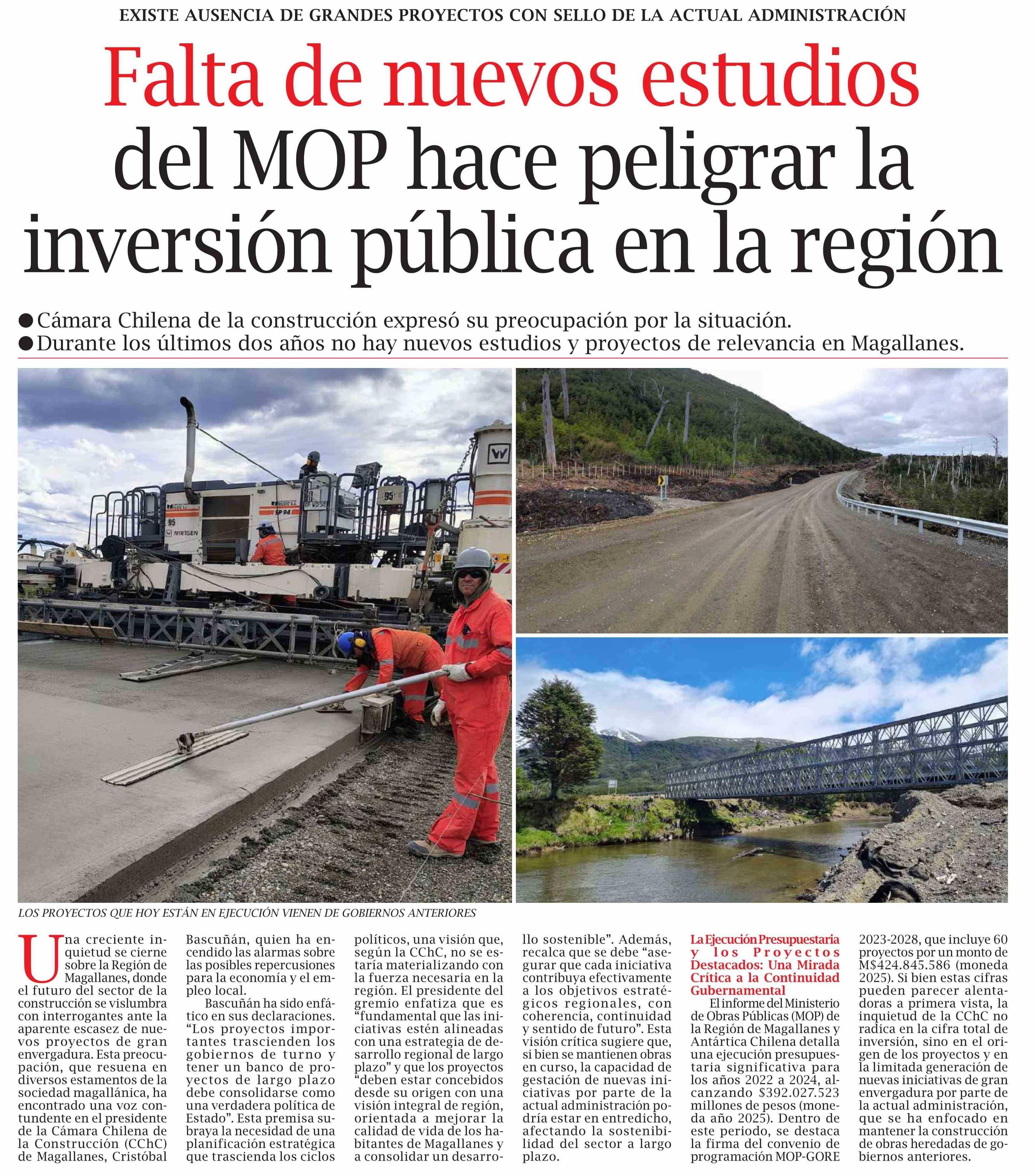 Falta de nuevos estudios del MOP hace peligrar la inversión pública en la región 08-06-2025 El Pingüino |