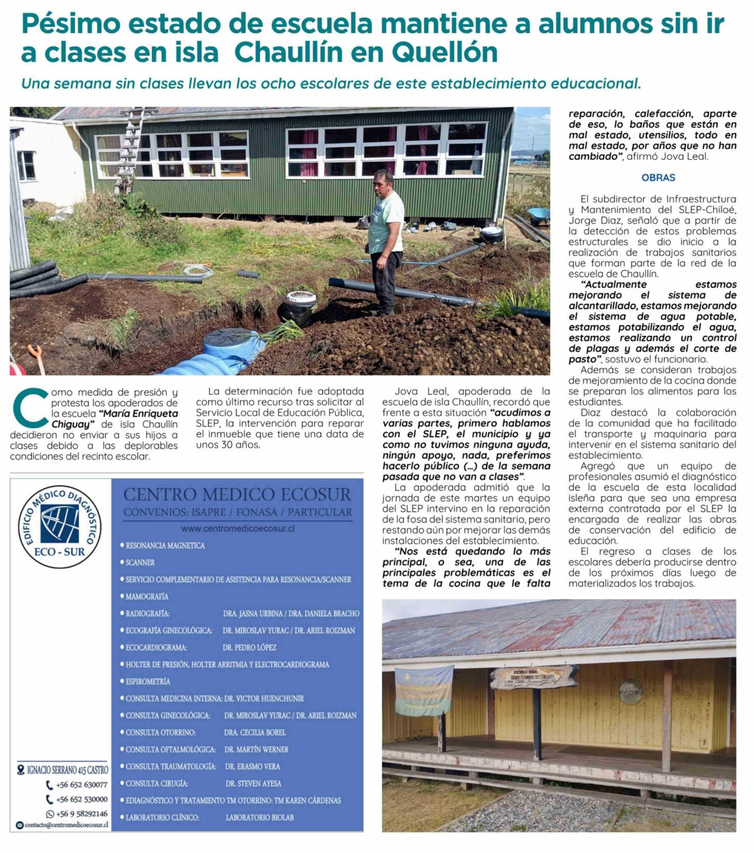 Título: Pésimo estado de escuela mantiene a alumnos sin ir a clases en isla Chaullín en Quellón