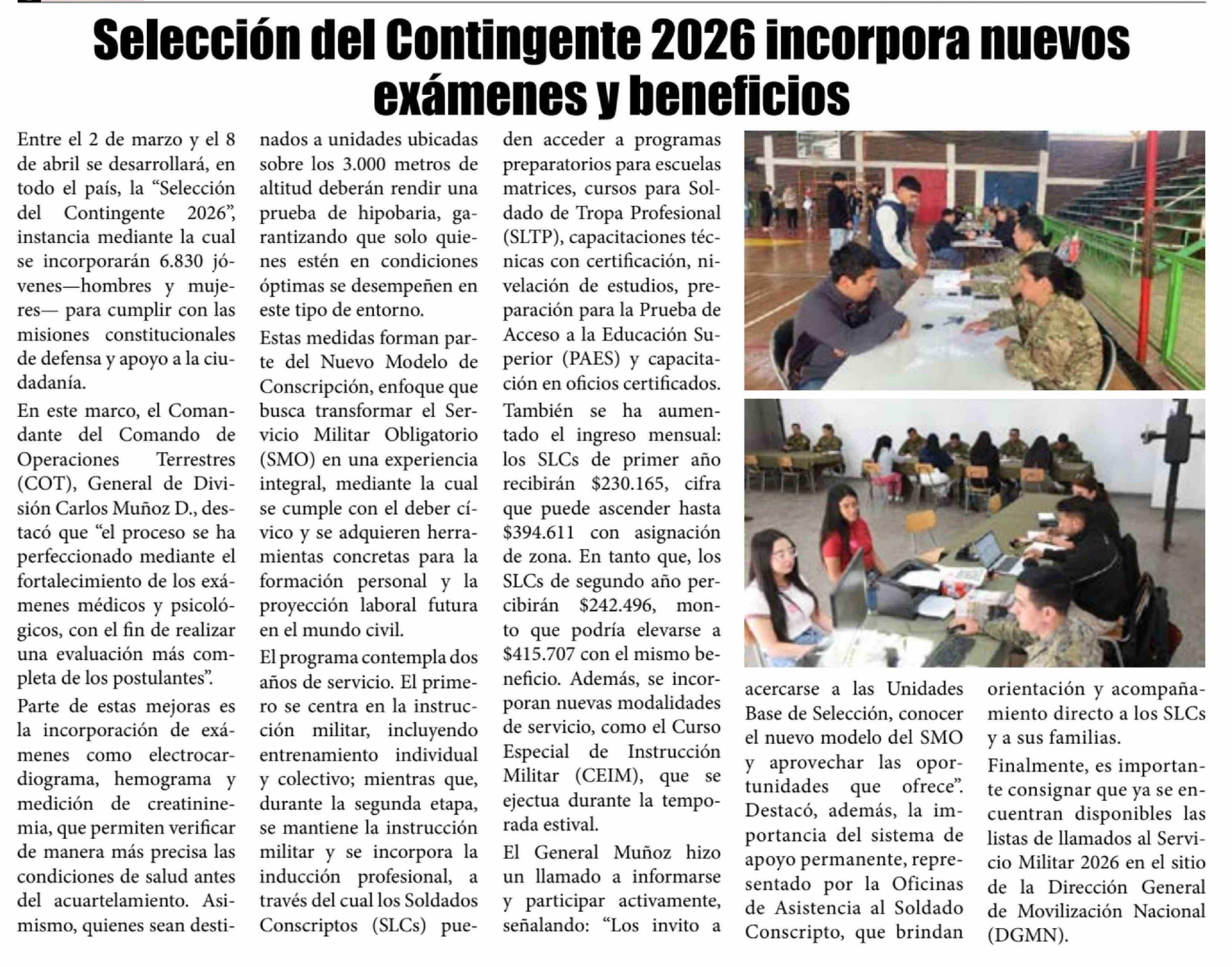 Título: Selección del Contingente 2026 incorpora nuevos exámenes y beneficios