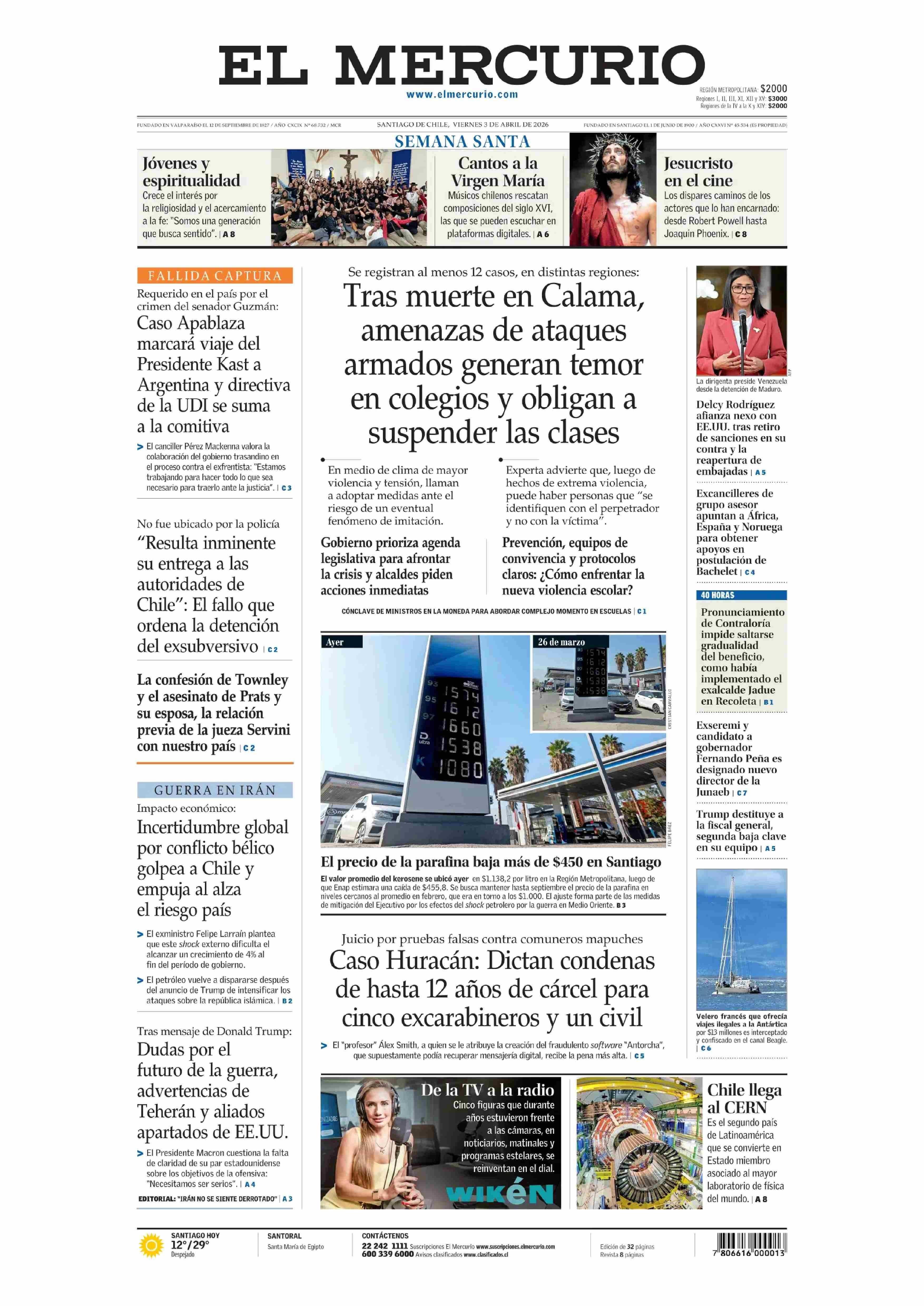 PORTADA EL MERCURIO (A) CHILE 03-04-2026 El Mercurio |