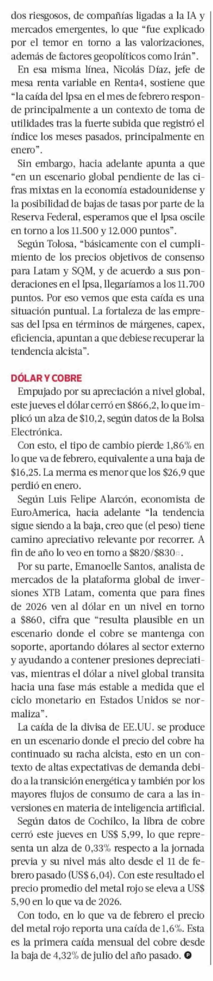 Ipsa se apronta a cerrar febrero con su mayor caída mensual desde octubre de 2023 27-02-2026 La Tercera |