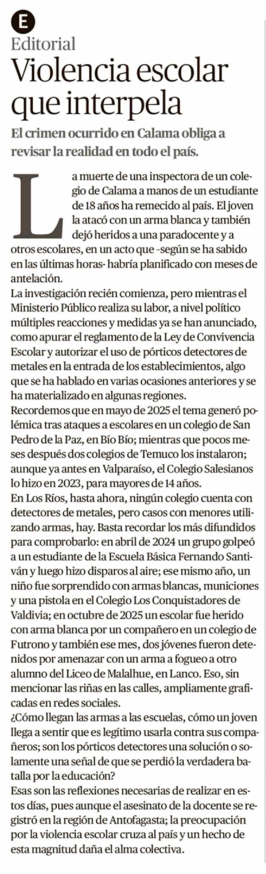 Fecha: 31-03-2026 Sector: Editorial Región: Región de Los Ríos