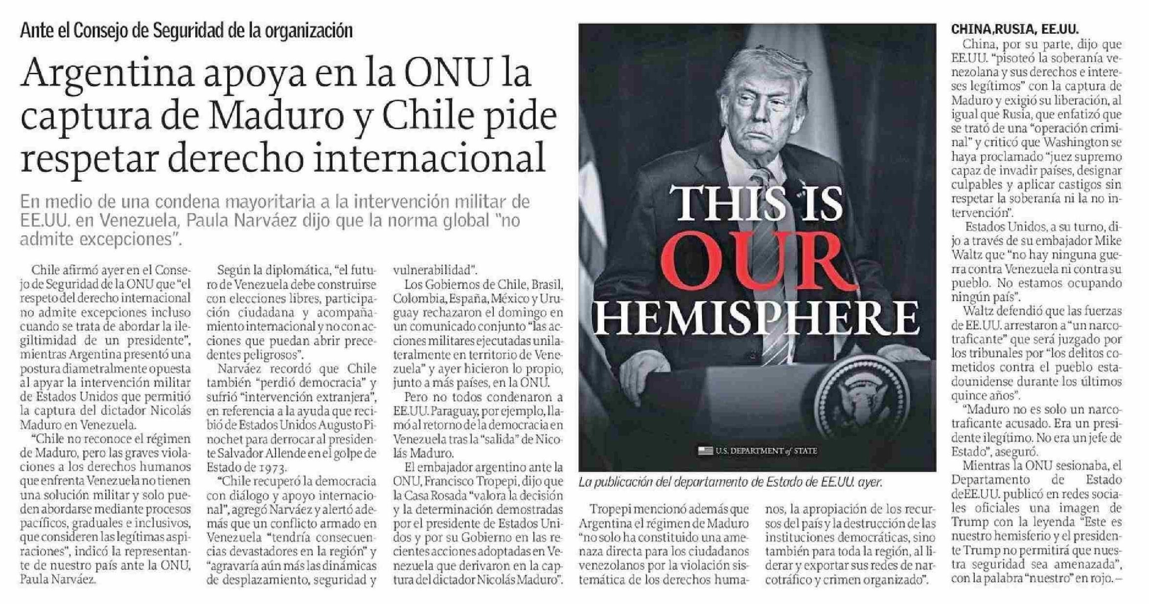Argentina apoya en la ONU la captura de Maduro y Chile pide respetar derecho internacional 06-01-2026 El Sur |